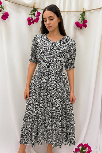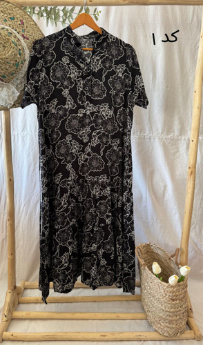 پیراهن ساحلی نخی آستین کوتاه یقه ب ب