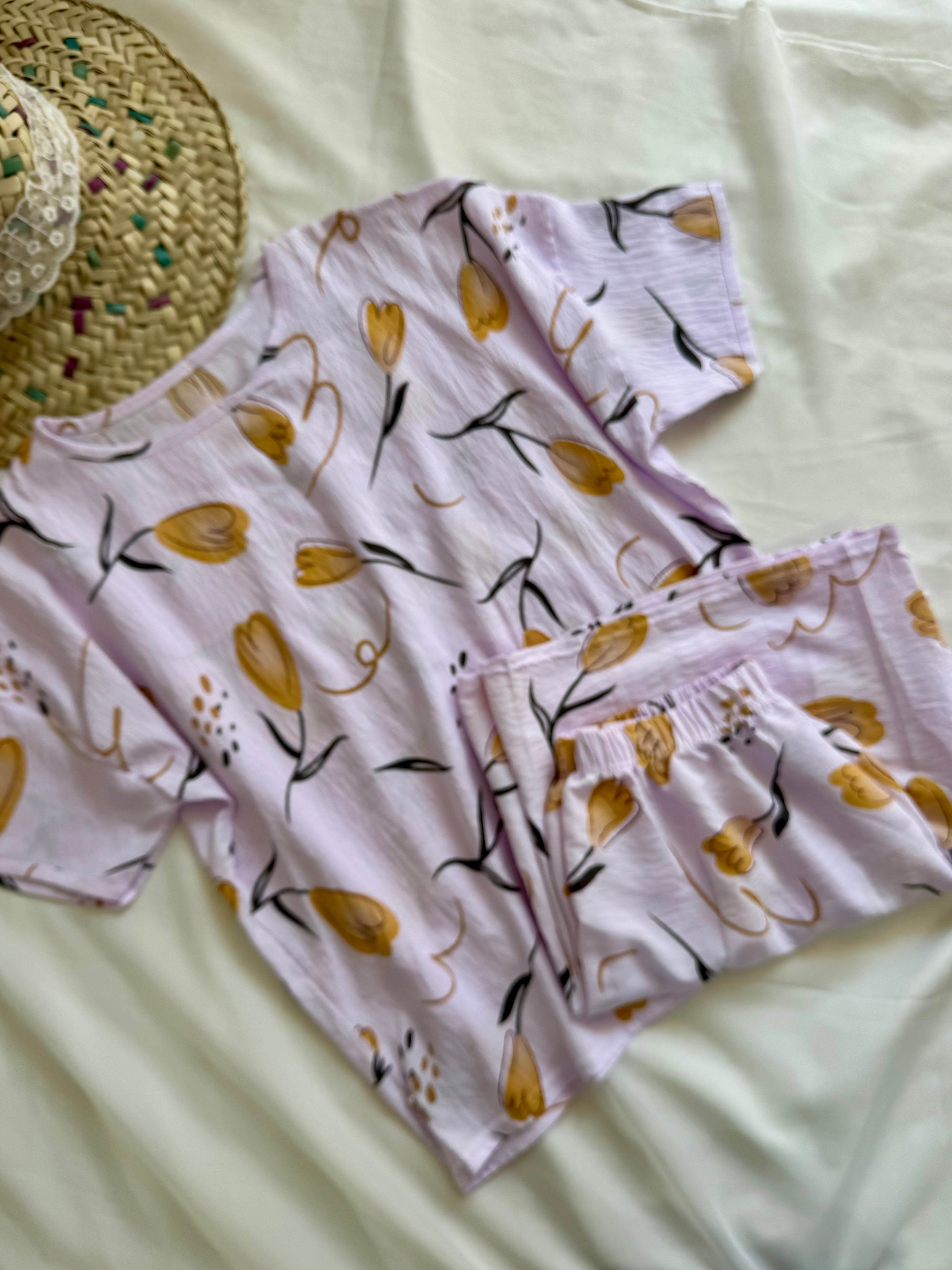 ست تاپ شورتک طرح دار دانتلی