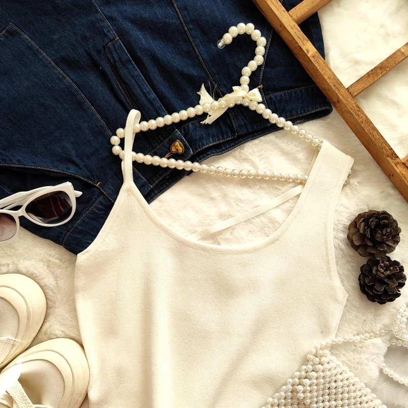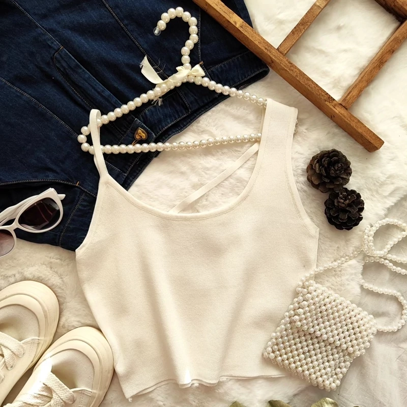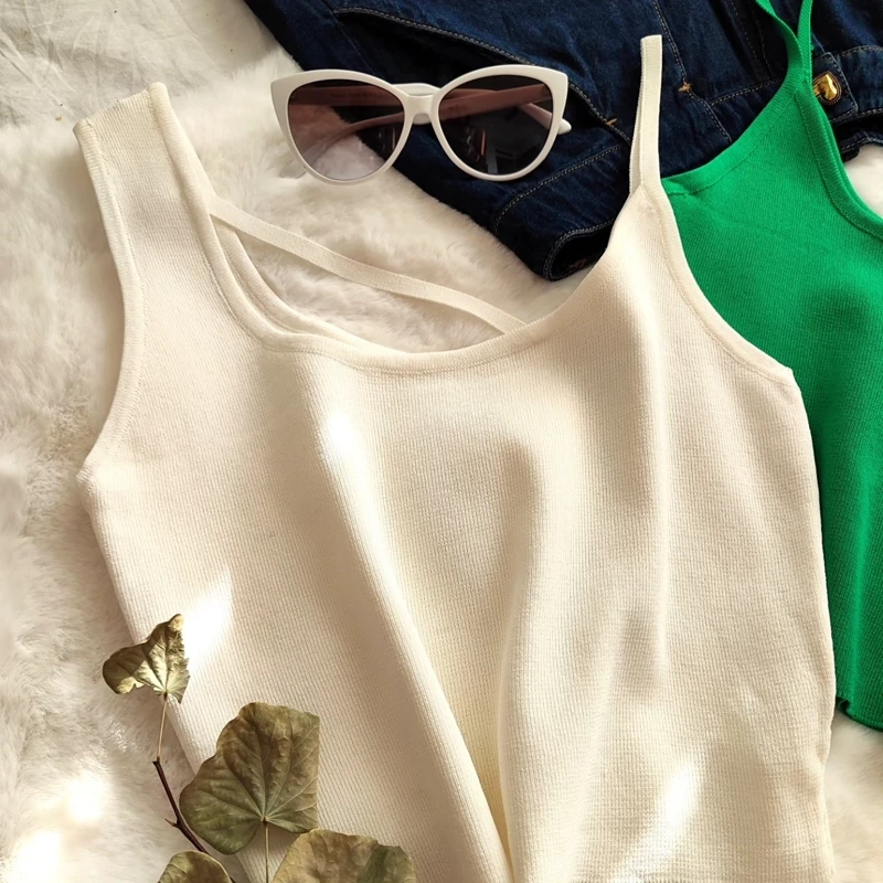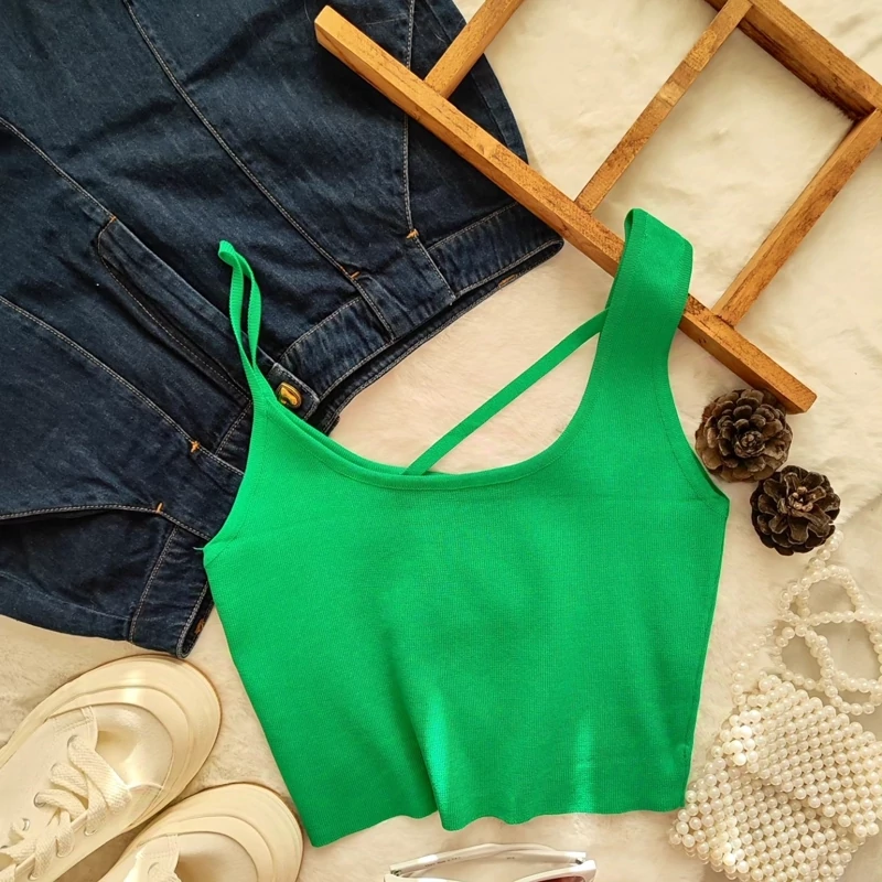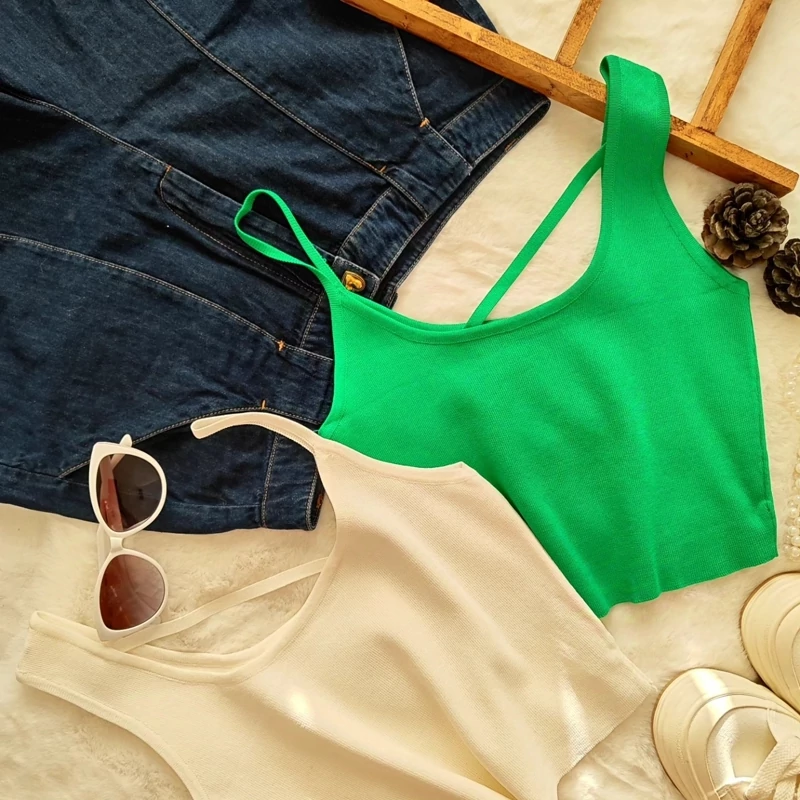 جنس کار بافت کریستال خیلی ظریف مدلش خیلی بامزه ست یه بند پهن داره و یه بند نازک چو پشت تاپ هم یک بند نازک از کمر رد میشه فری سایزه و دو رنگ سفید و سبز داره