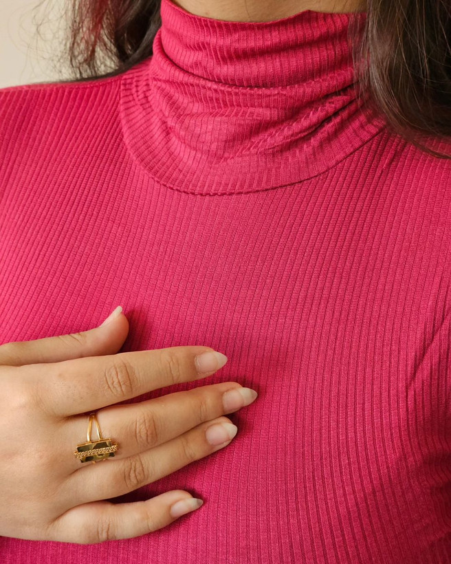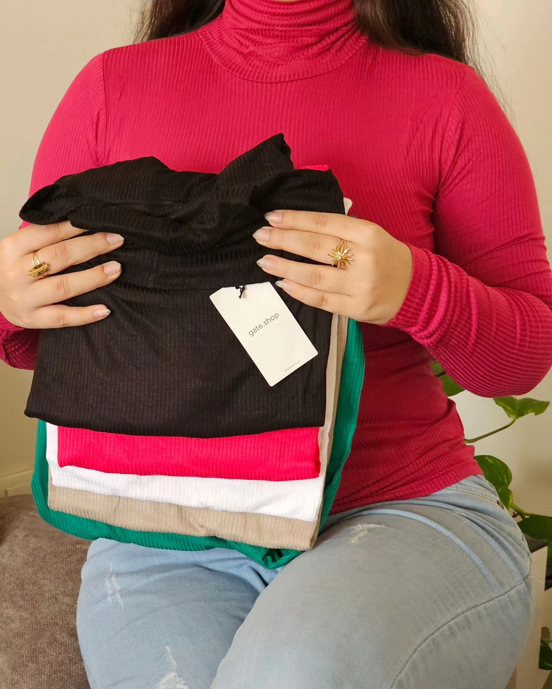 یه بلوز یقه اسکی که جنسش نخ پنبه باشه و نازک و لطیف و ظریف برای خوش تیپ بودنت توی پاییز نیازه این کار وارداتی و برند دارای سایزبندی و جنس پارچه کشسانی داره