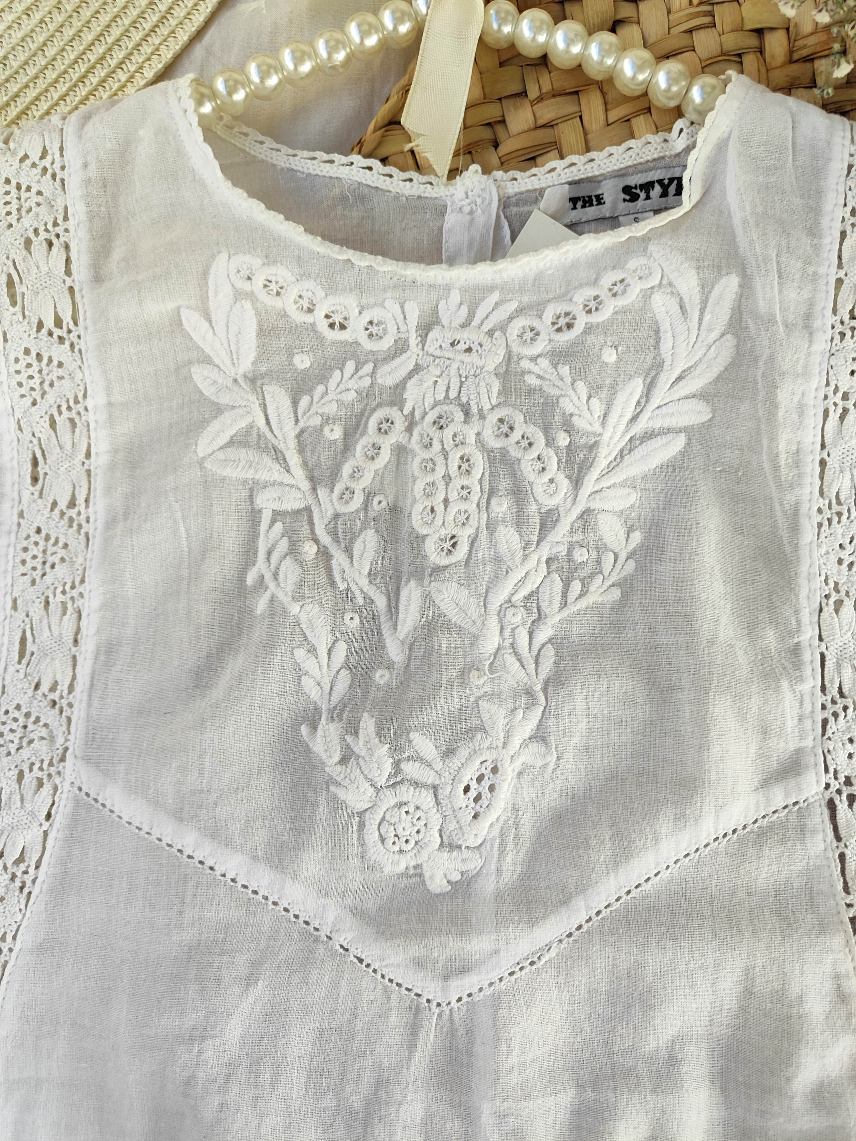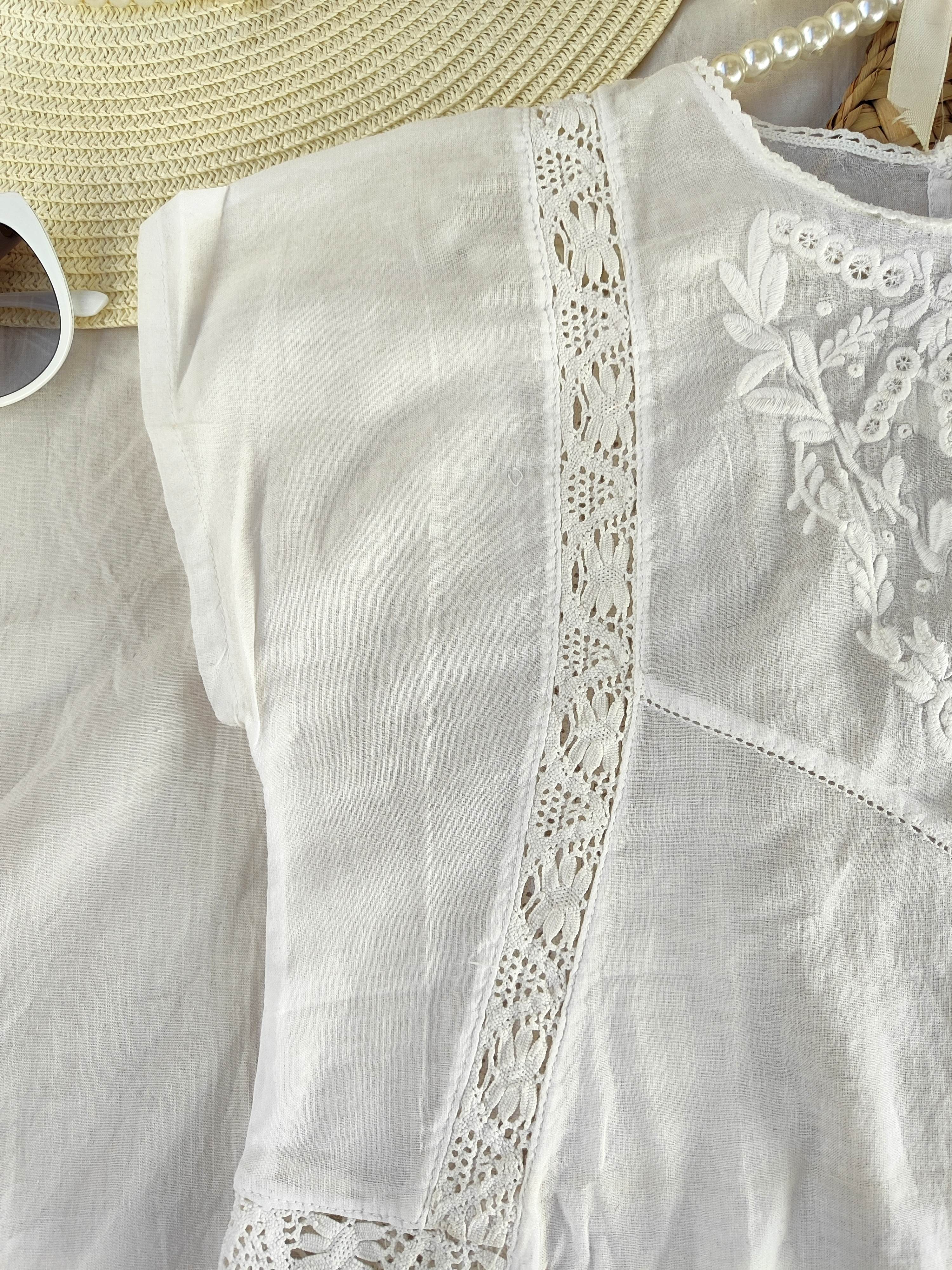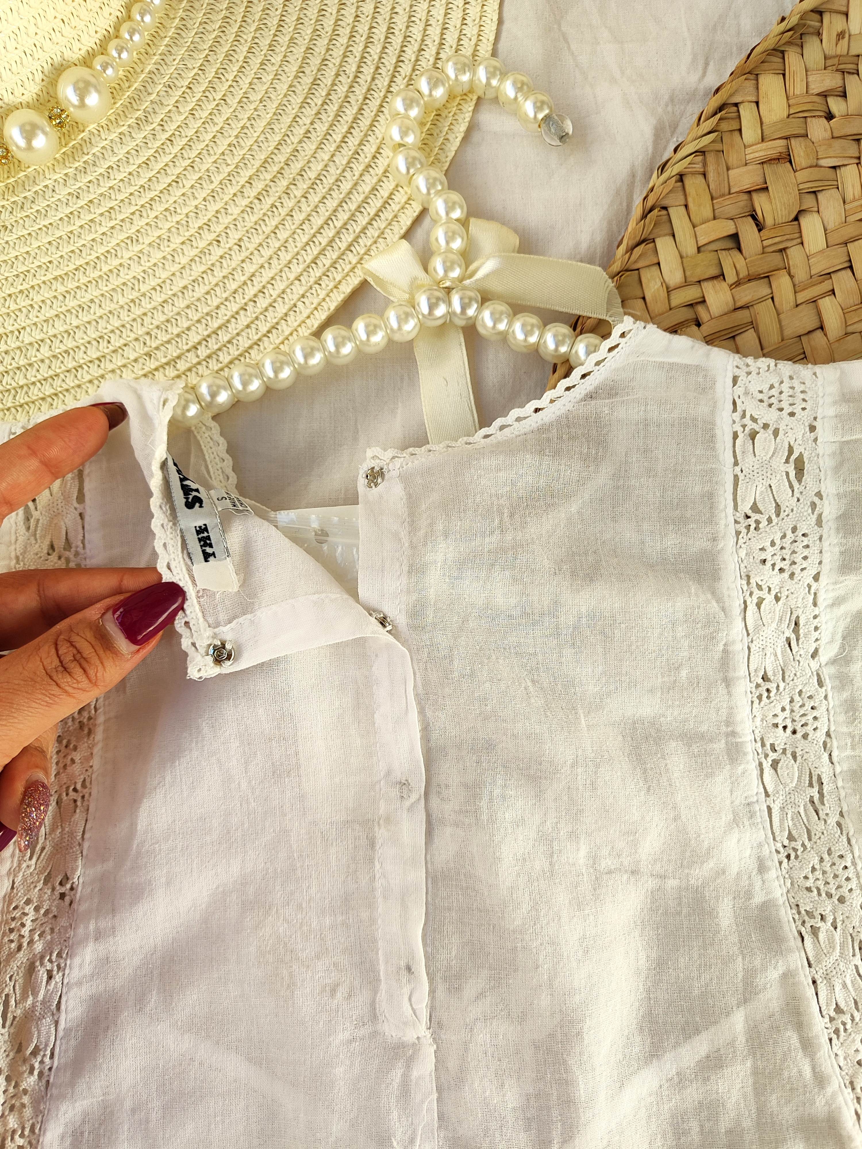 بلوز آستین حلقه نخی دخترانه دانتل دار