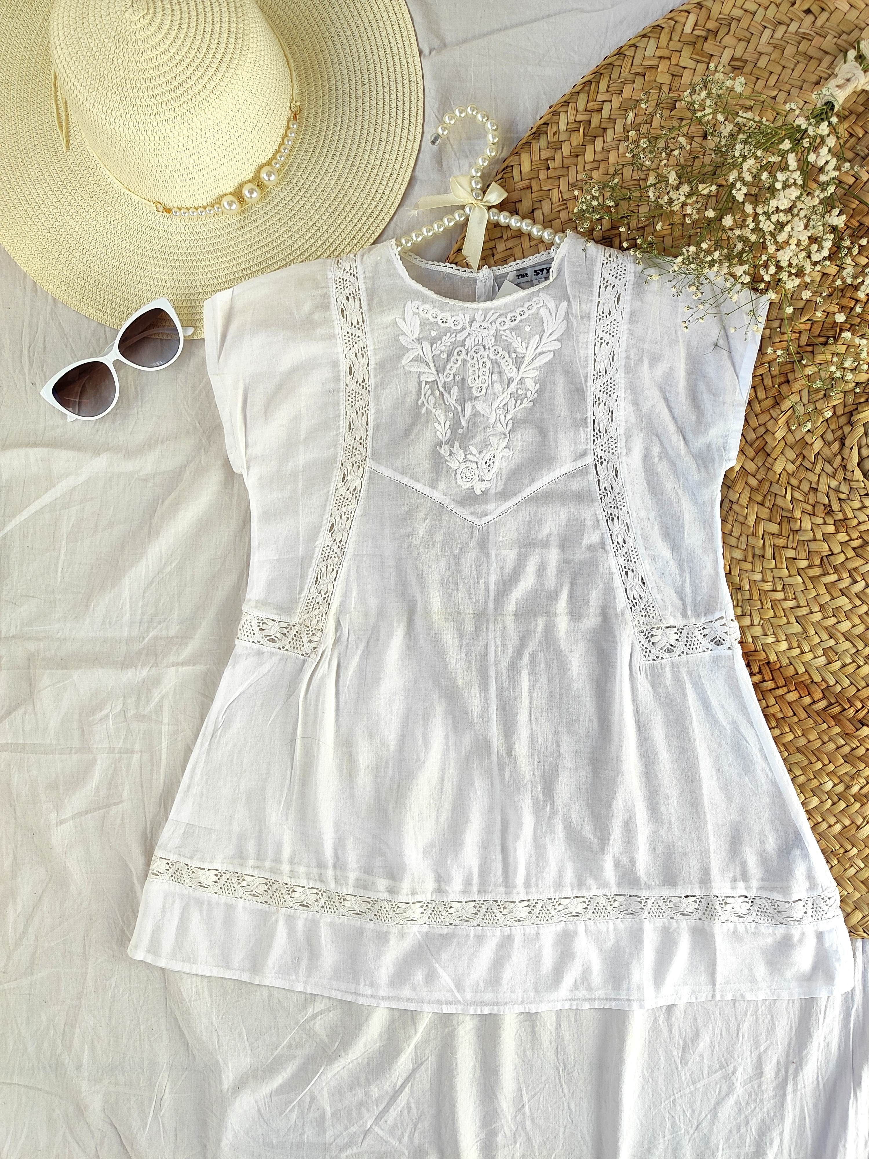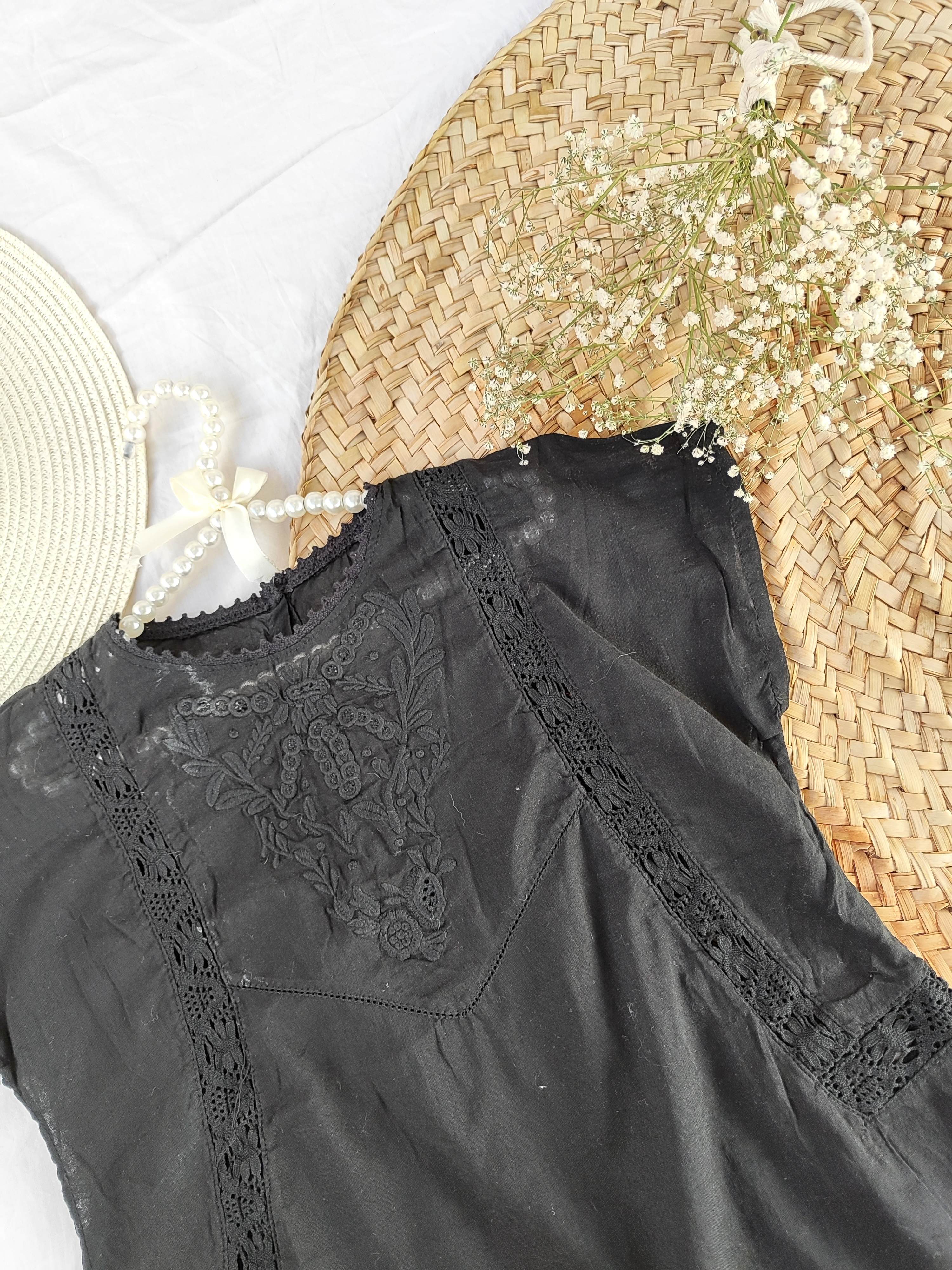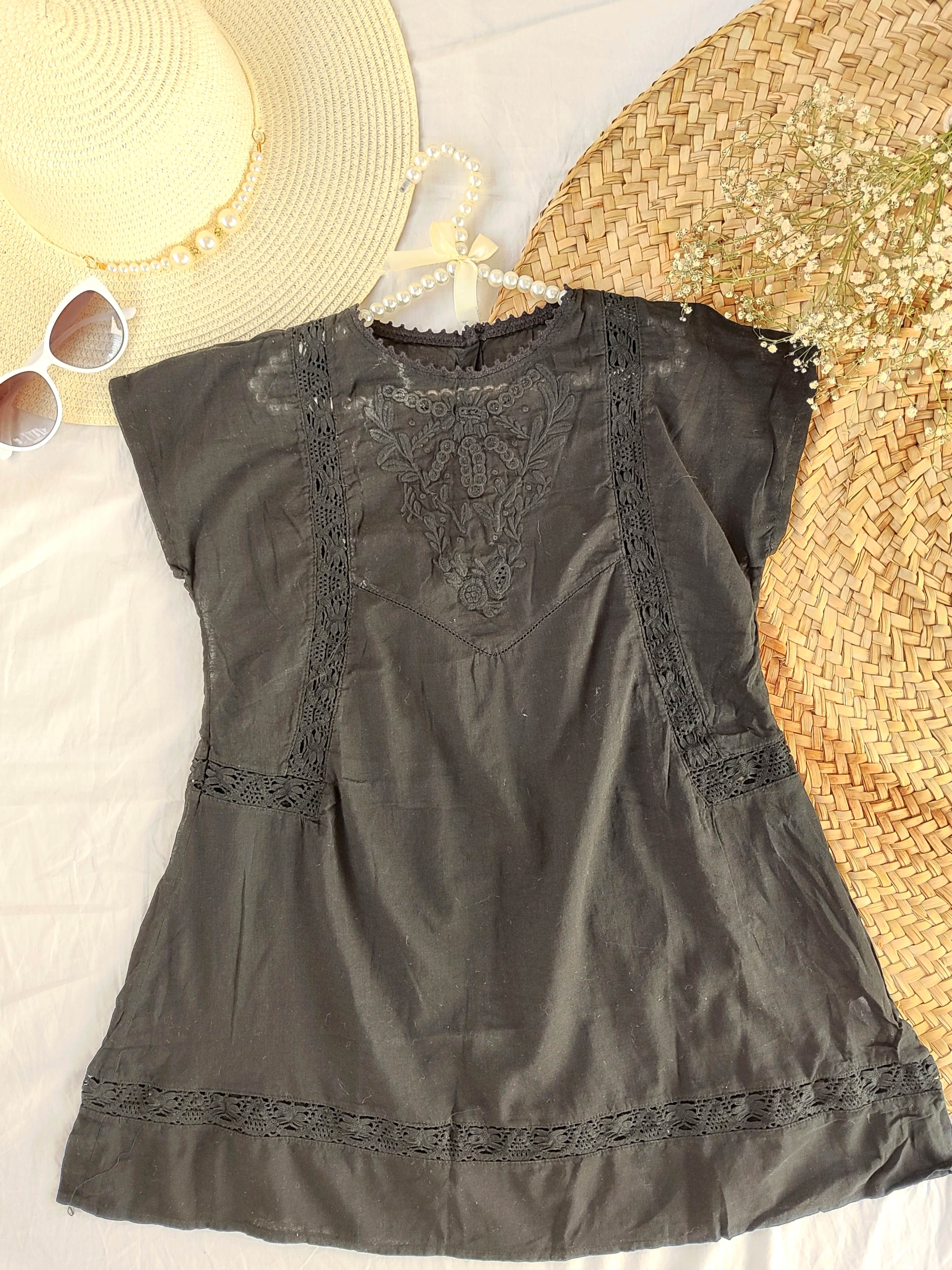 بلوز آستین حلقه نخی دخترانه دانتل دار