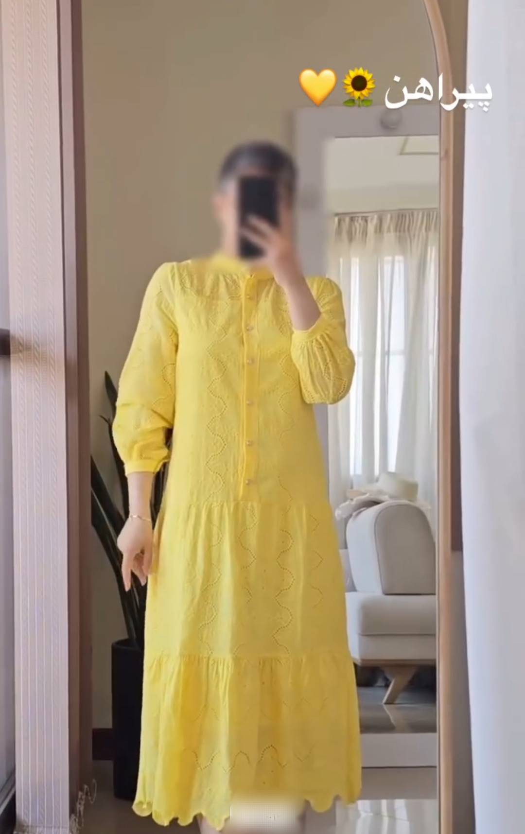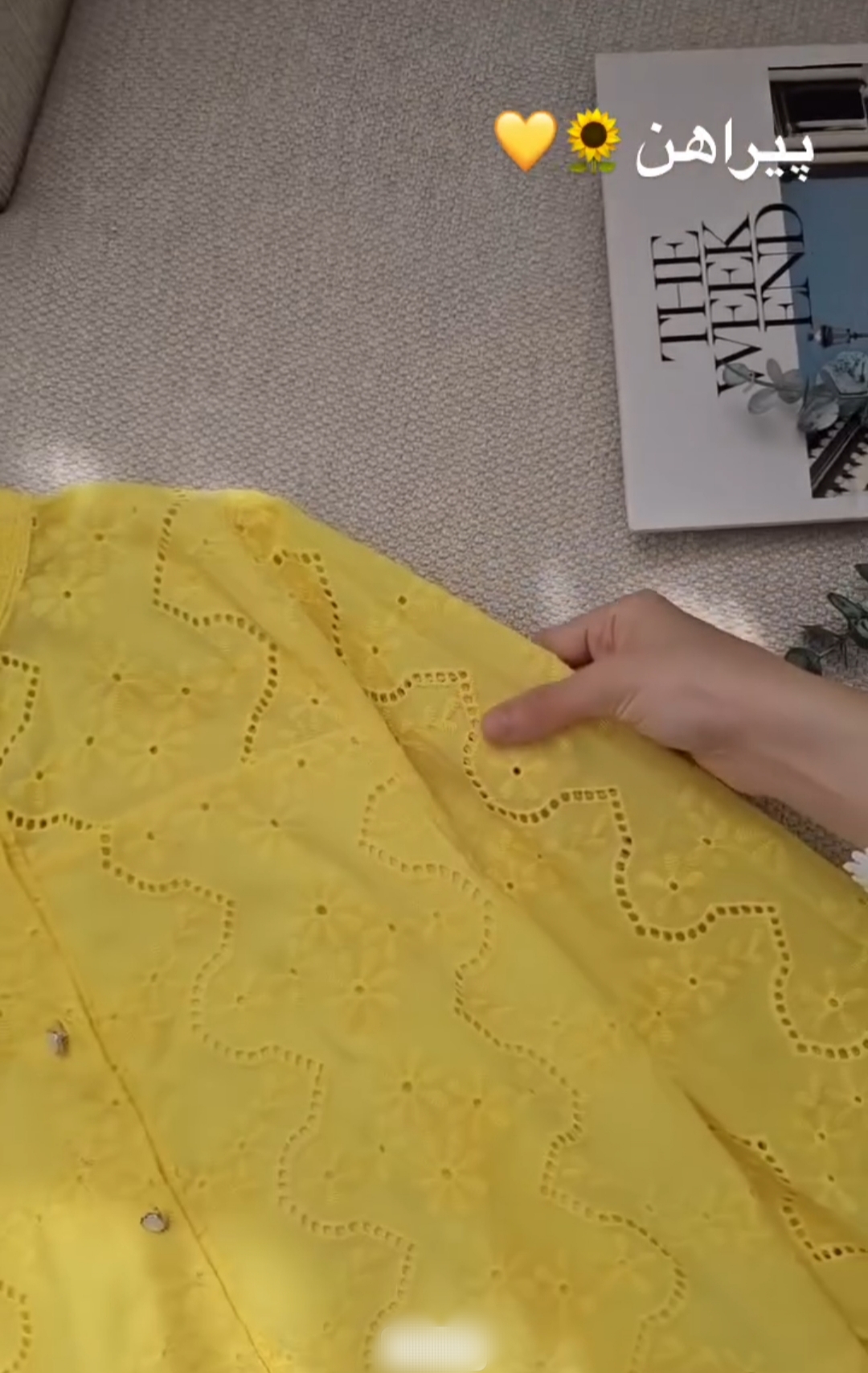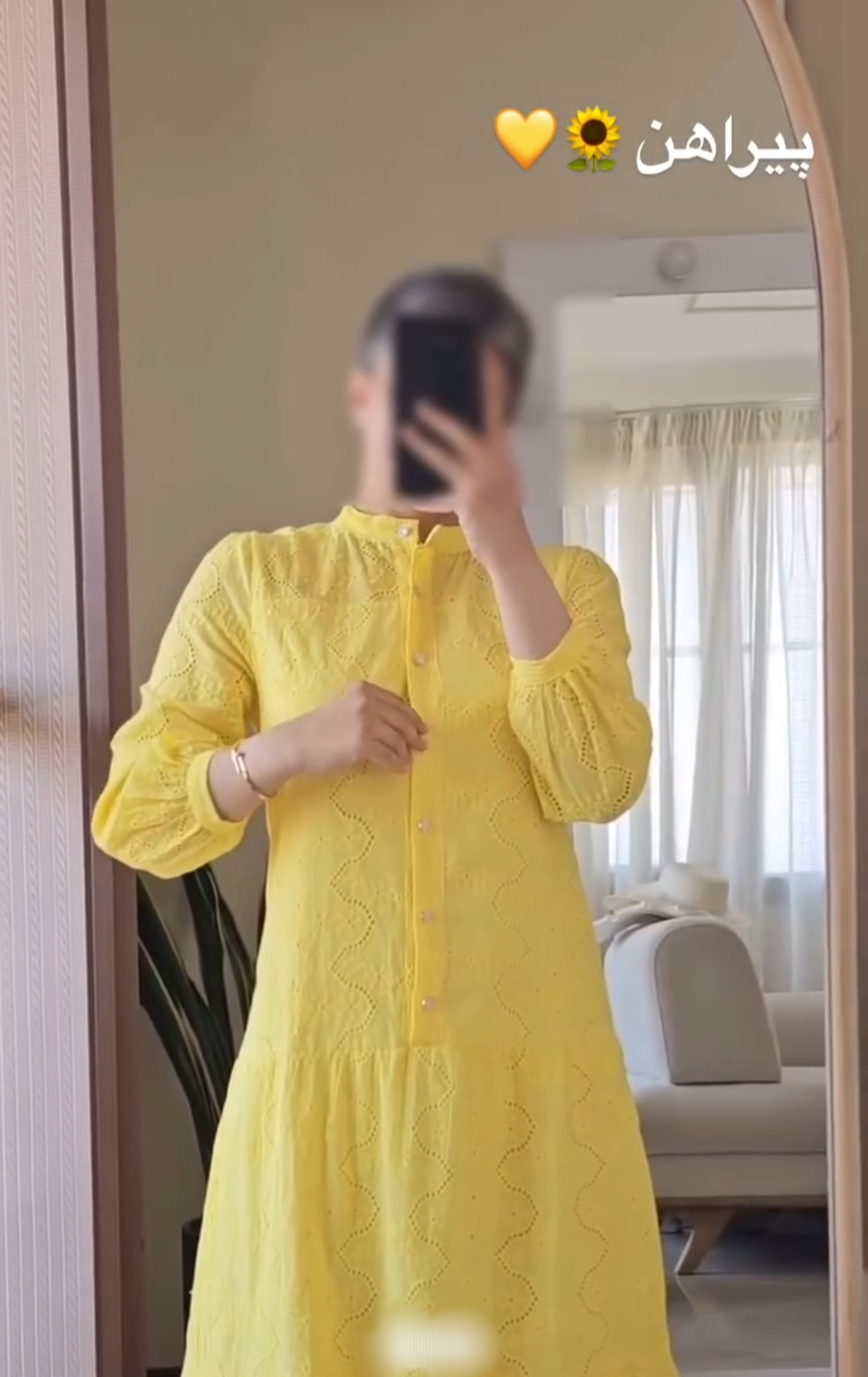 پیراهن تمام خامه دوزی آستر کشی شده جلو پیراهن دکمه میخوره تا قسمت بالاتنه تک رنگ زرد و تک سایز کمربند هم داره فاصله دو زیر بغل ۵۰ بلندی ۱۲۲