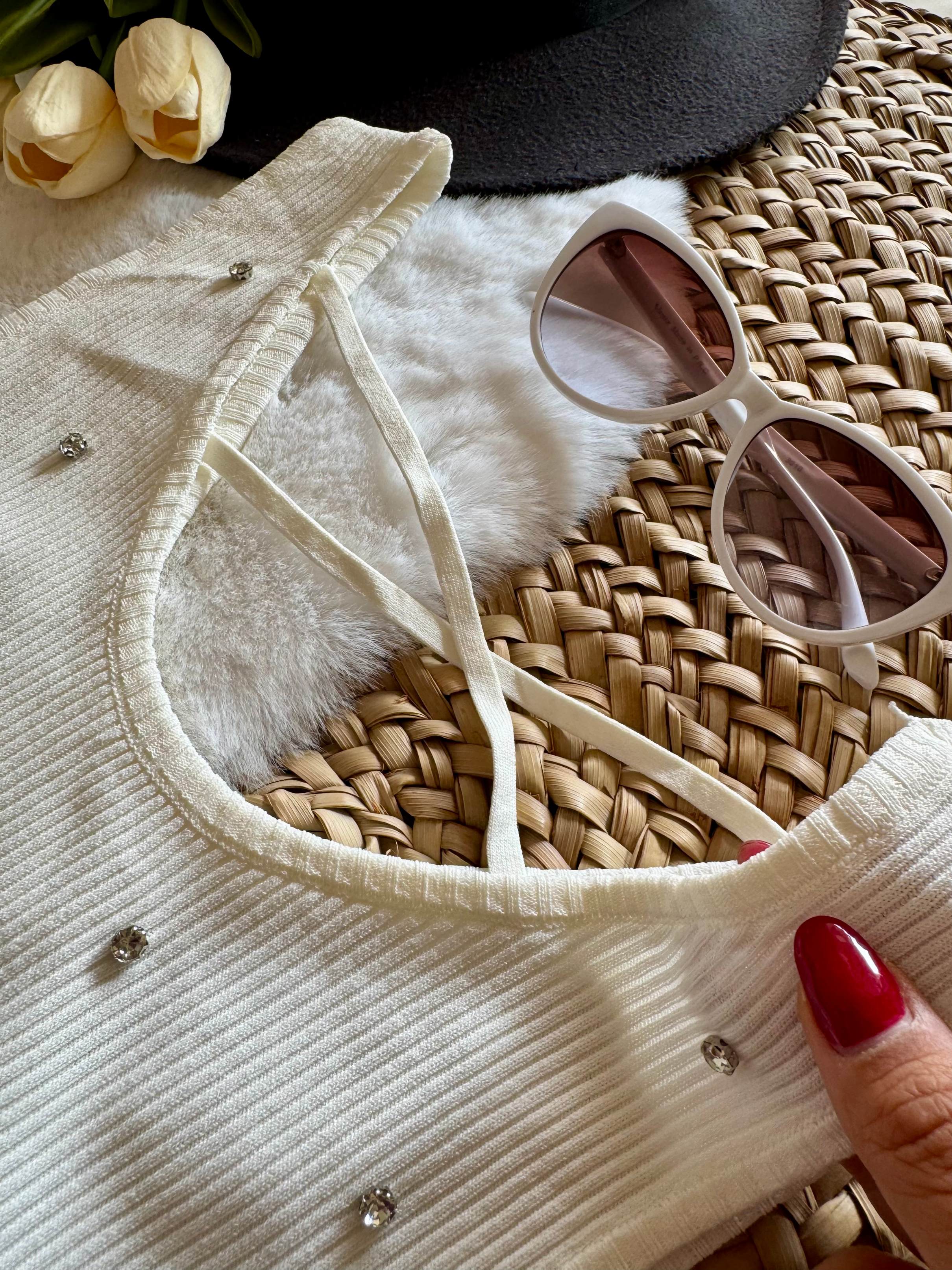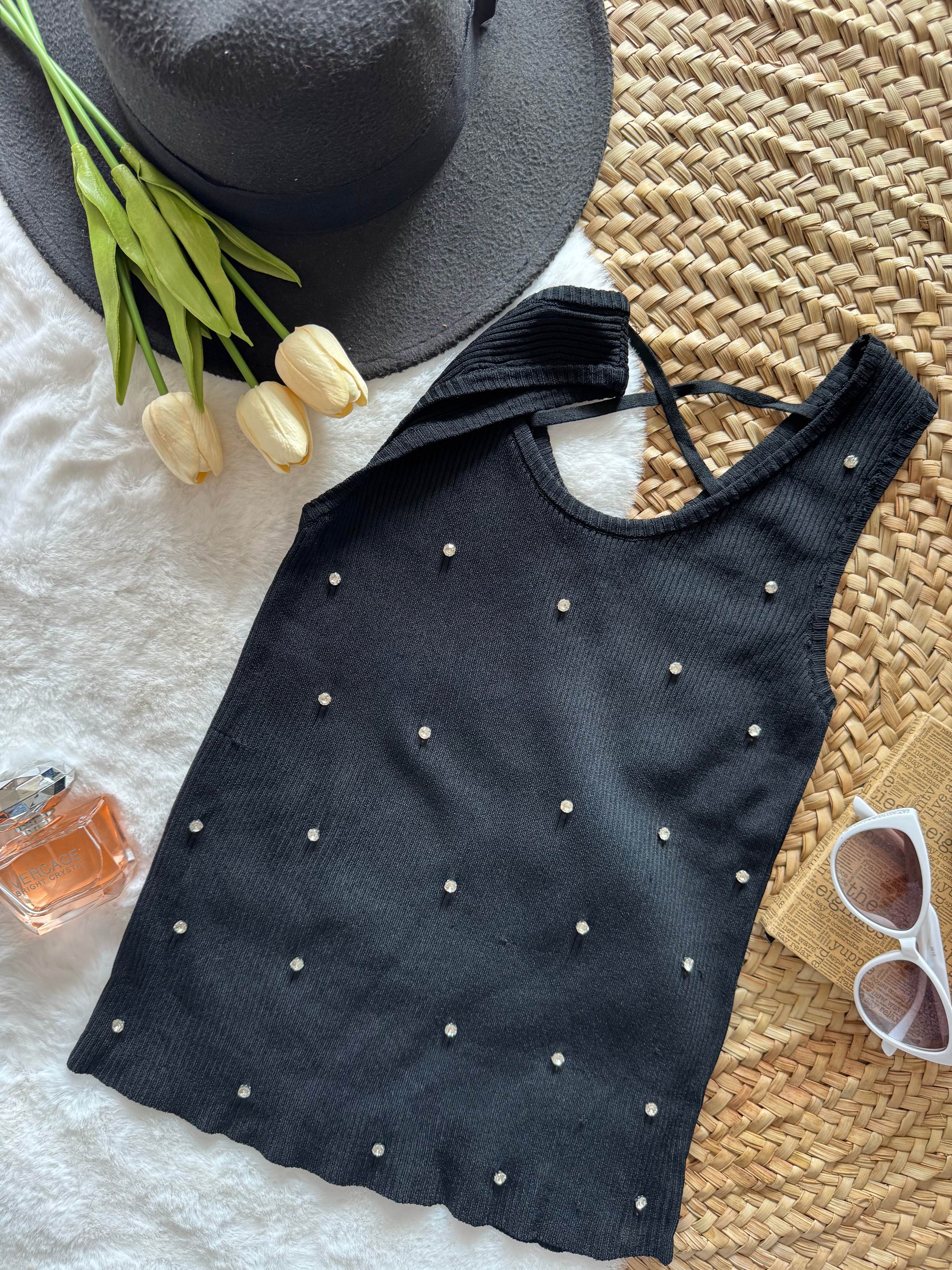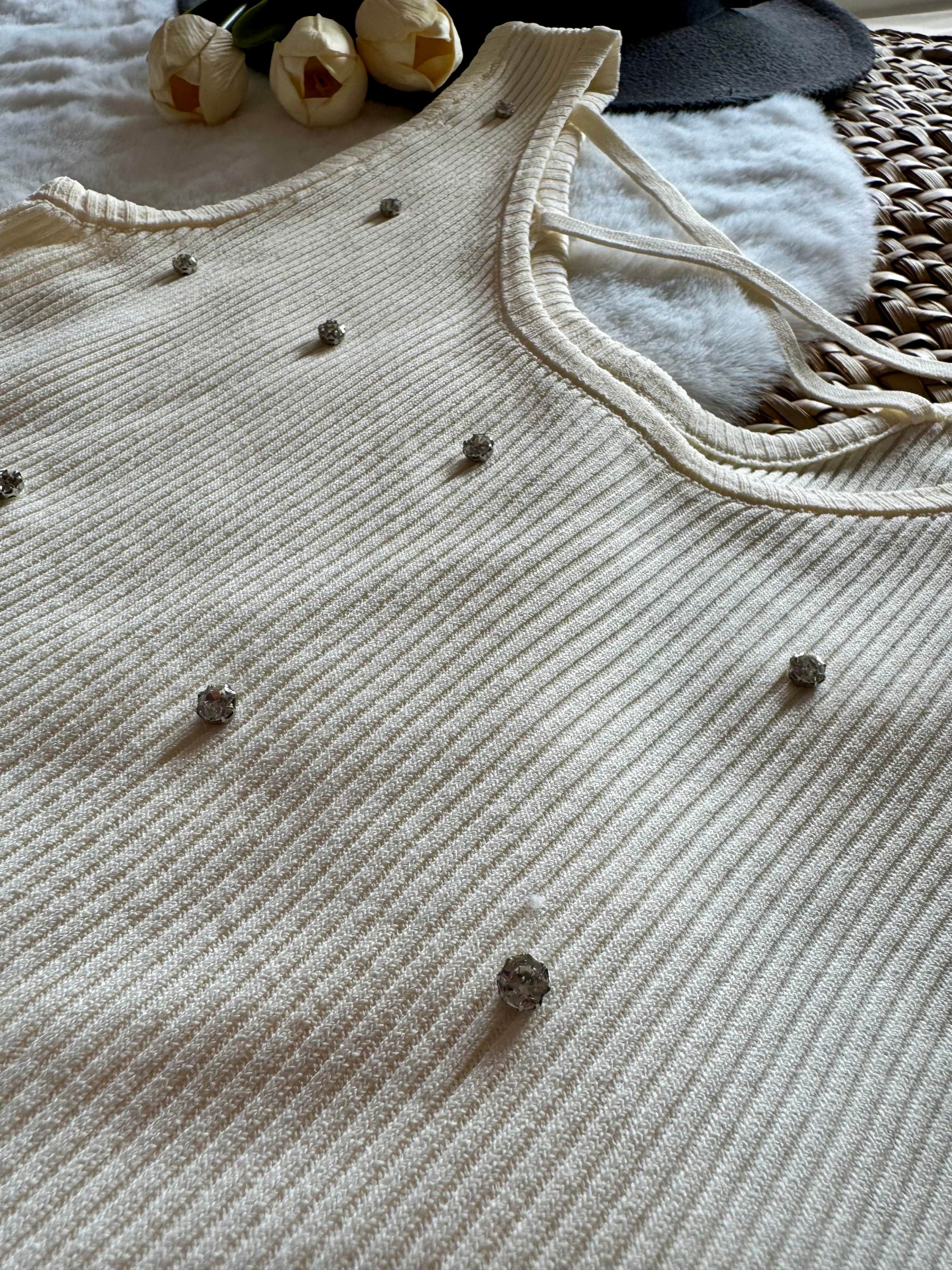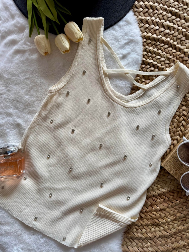 تاپ بافت زنانه و دخترانه مدل پشت ضربدری