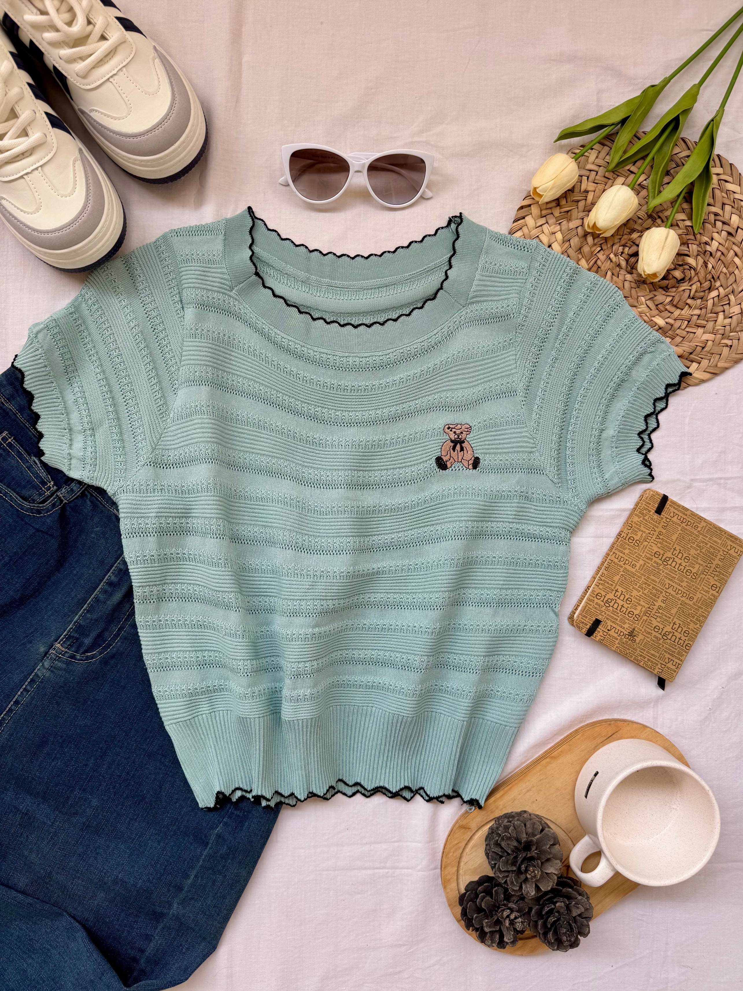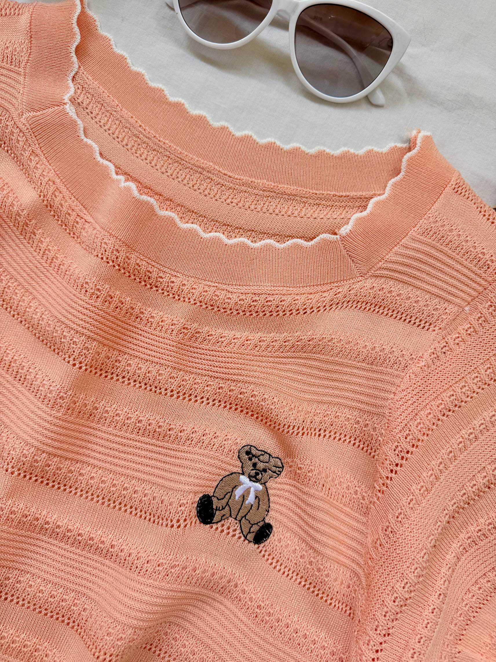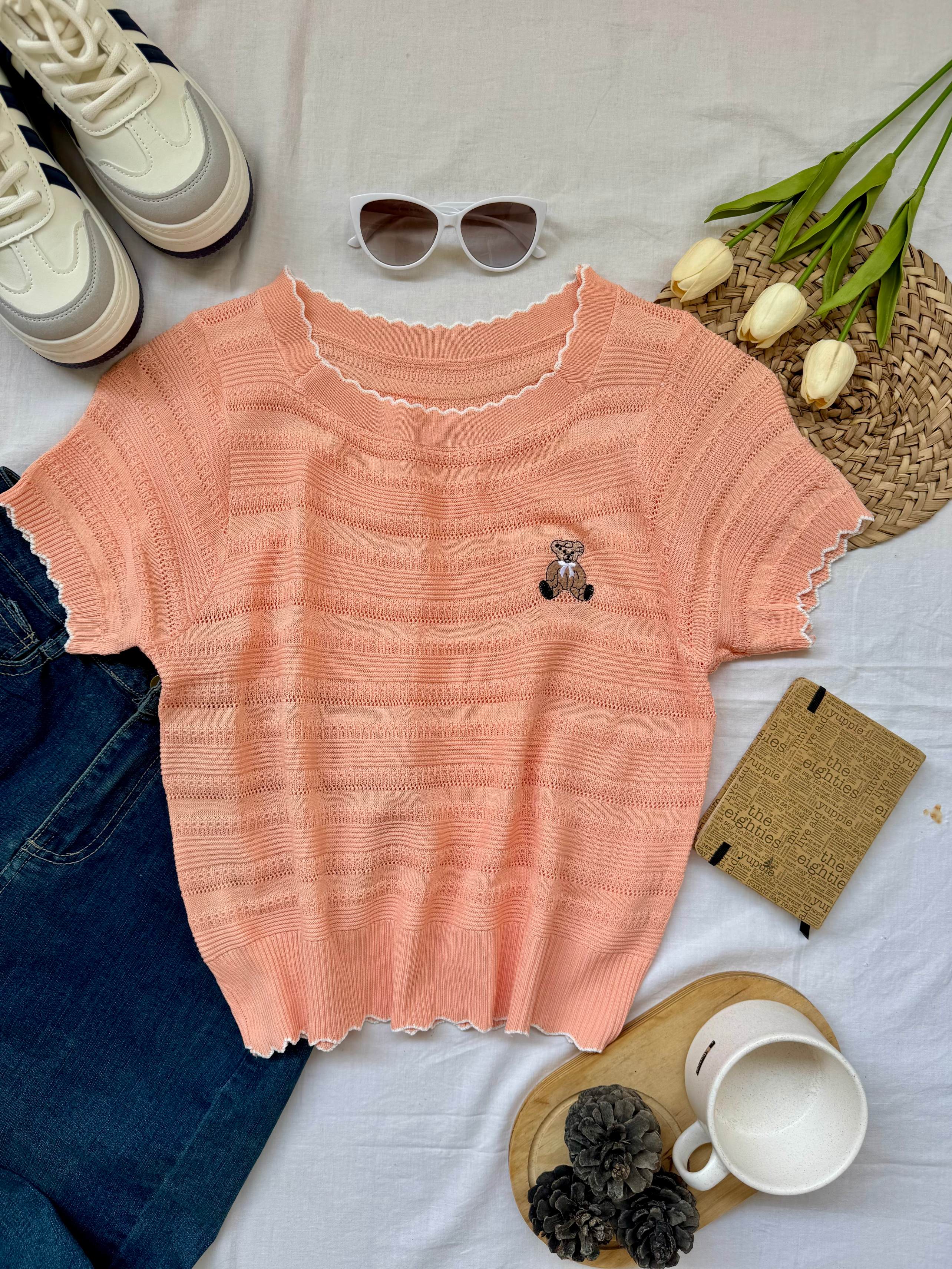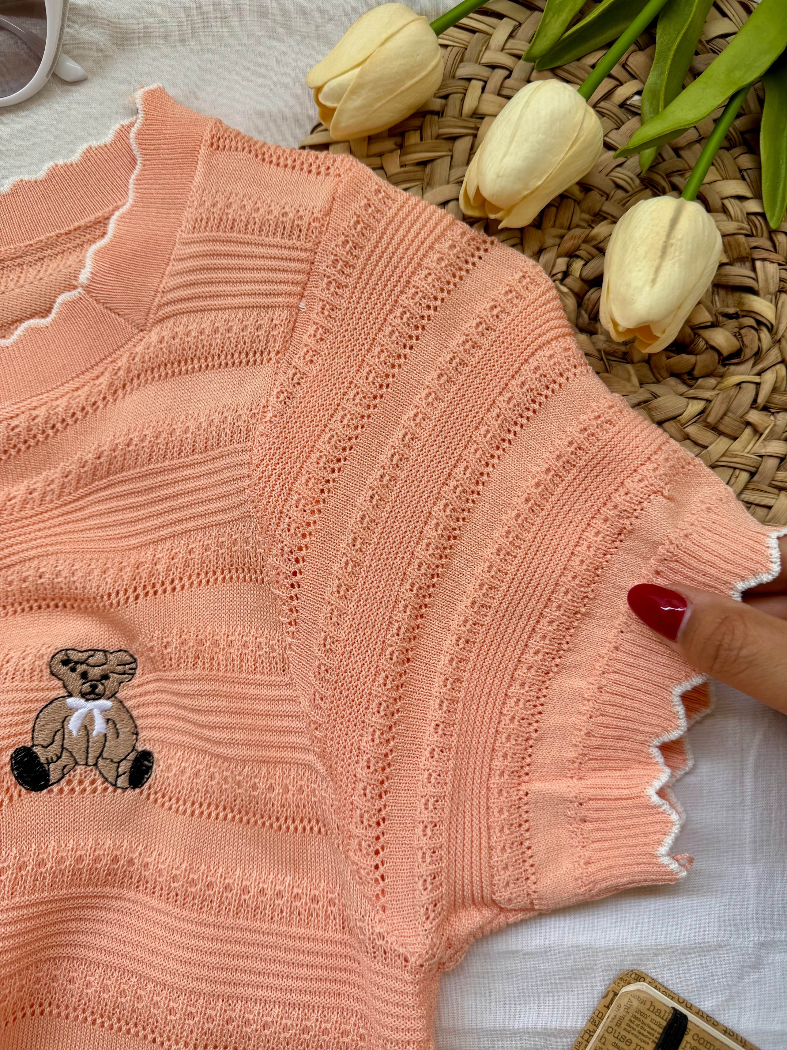 بافت آستین کوتاه تدی🐻 یه بافت کیوت و نمک با رنگای پاستلی کار وارداتی جنسش بافت کریستال سبک و لطیف فری سایز همراه با کشسانی بالا پنج تا رنگ داره