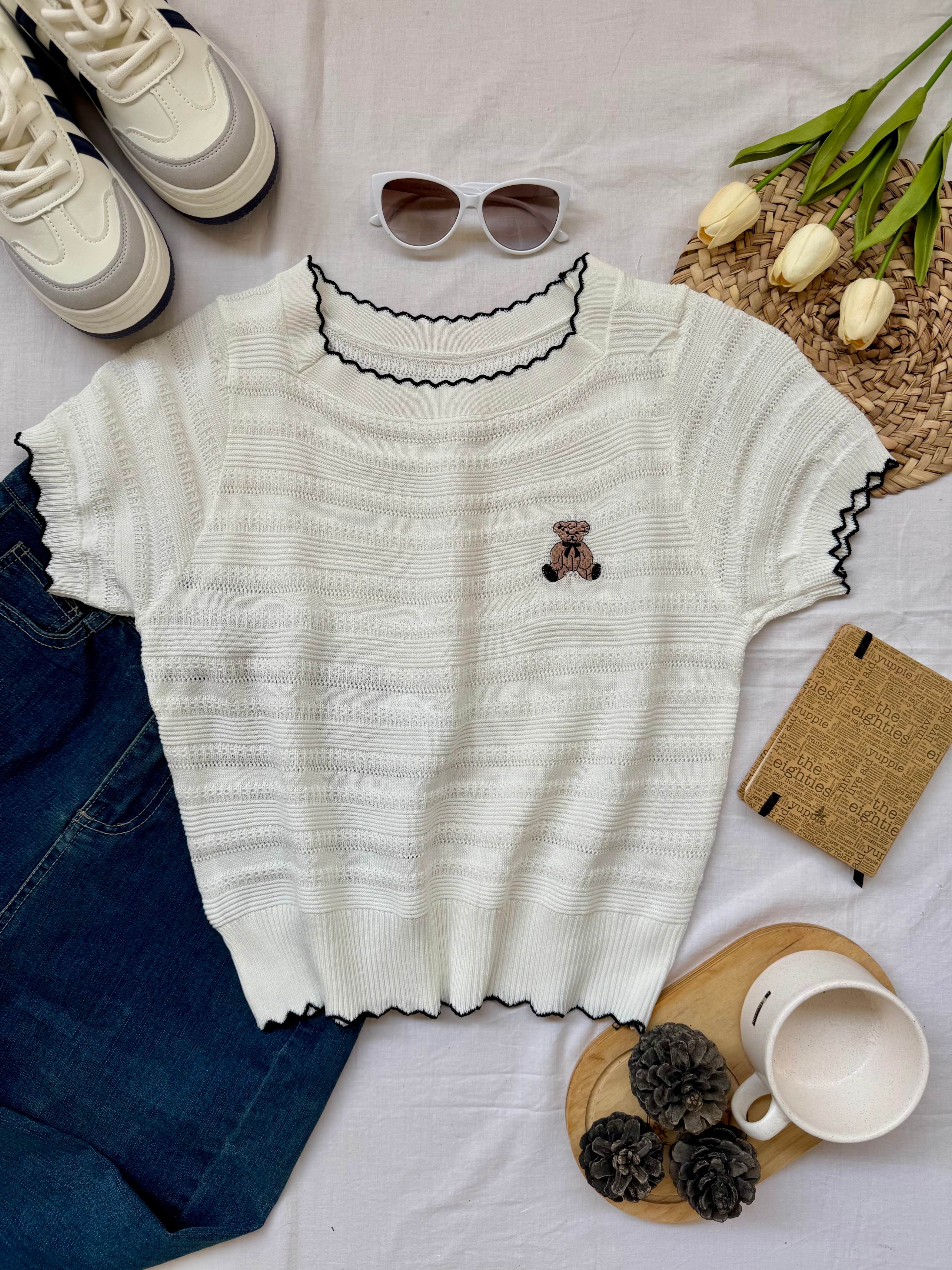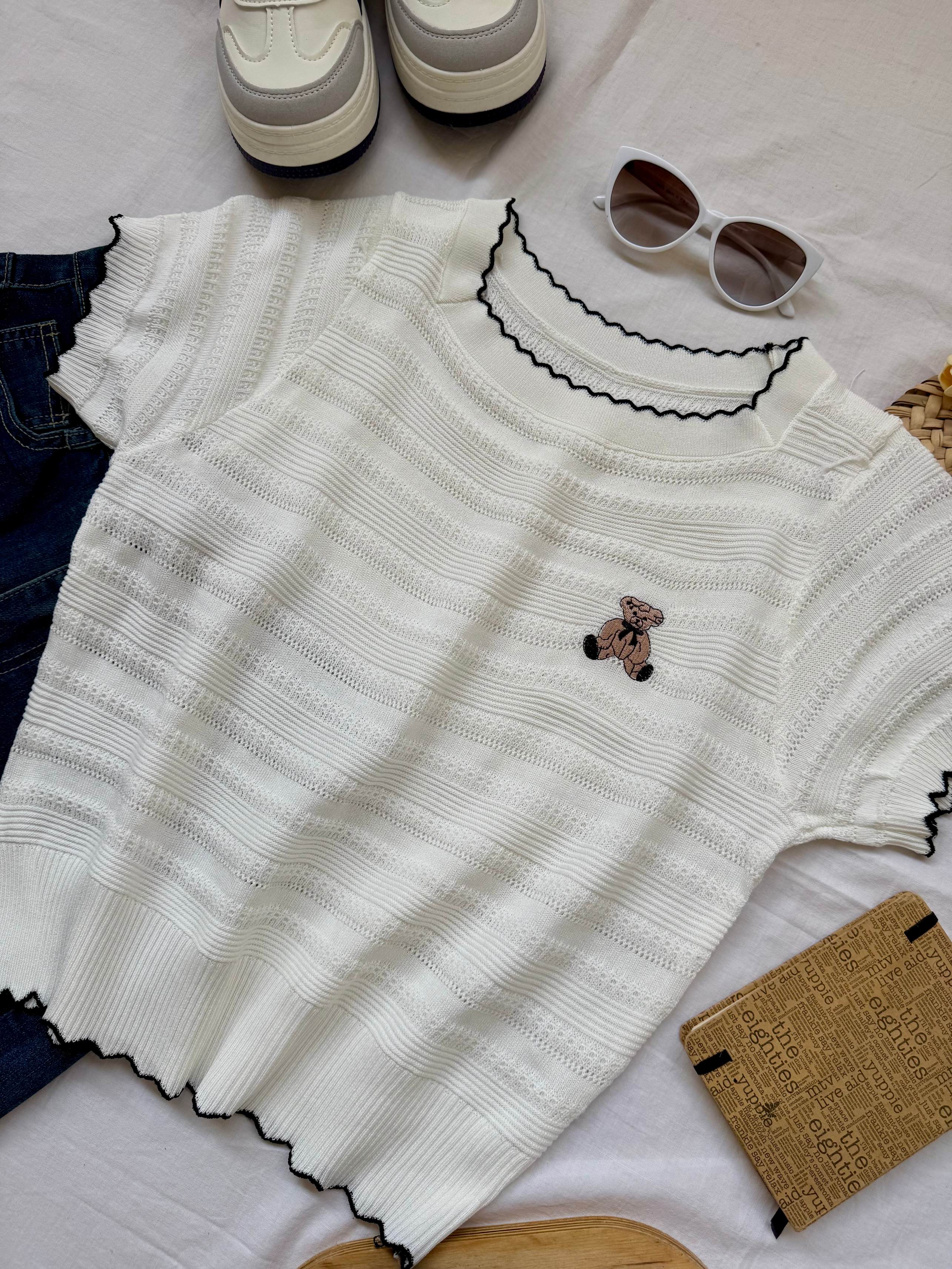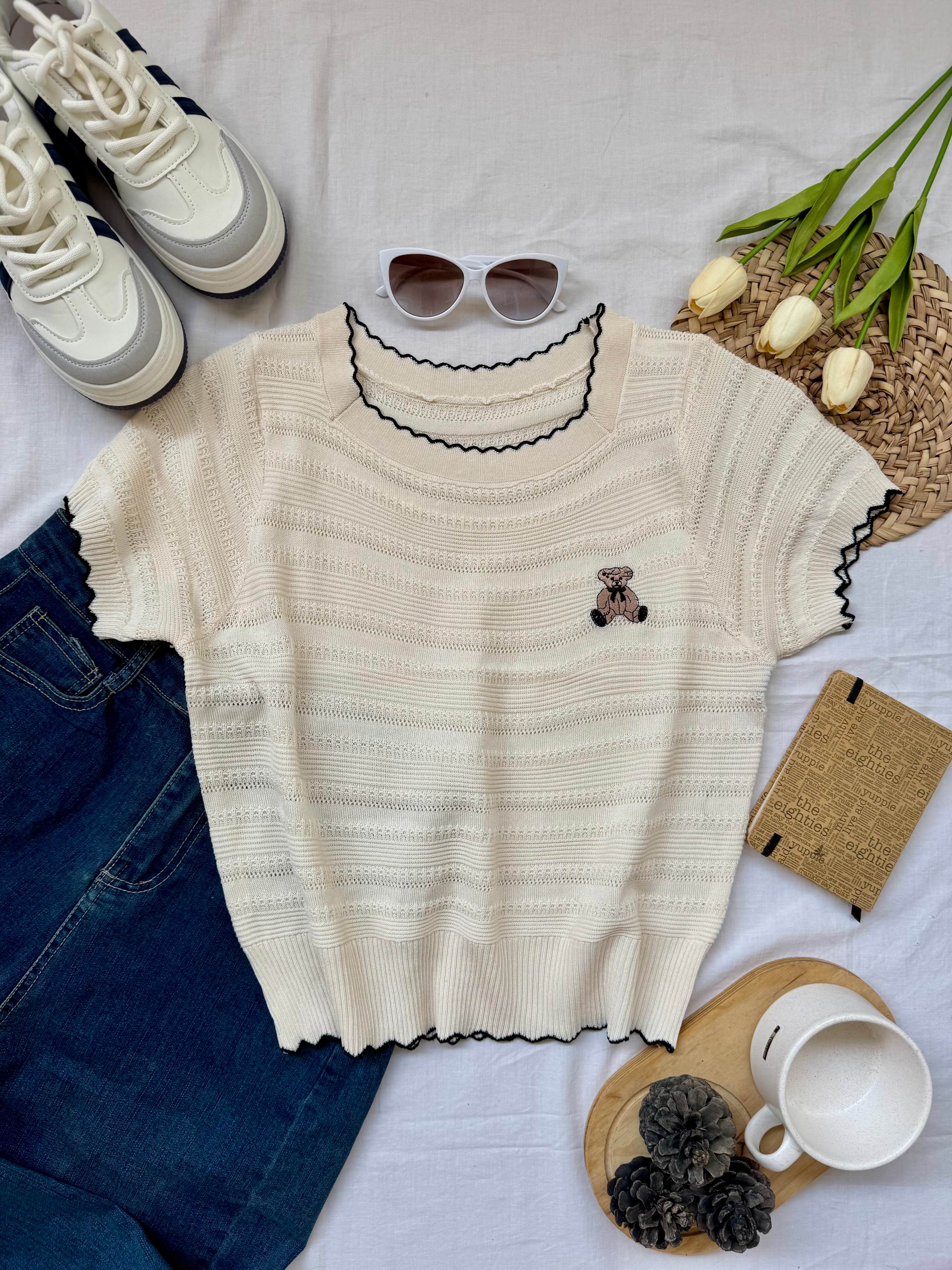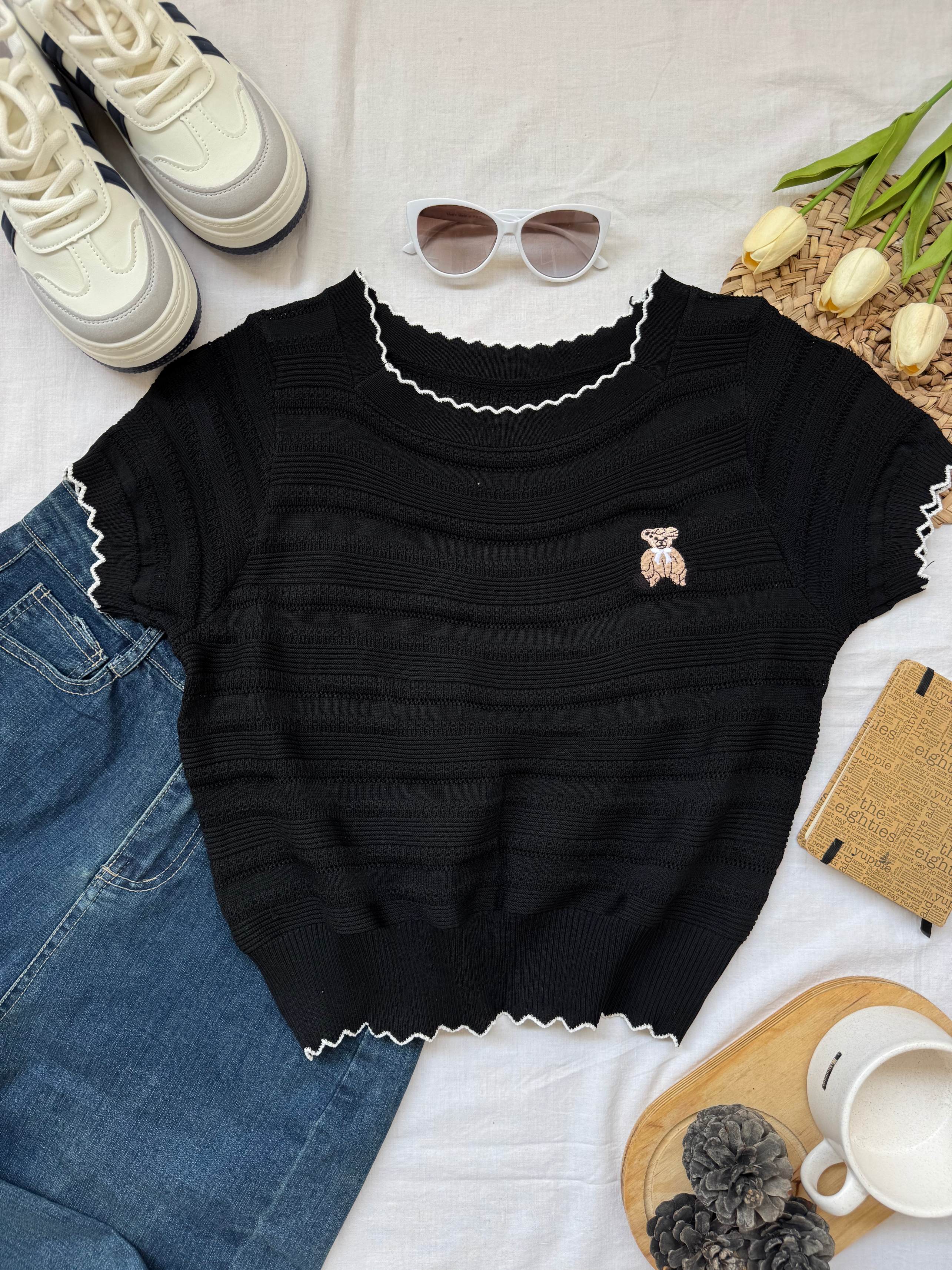 بافت آستین کوتاه تدی🐻 یه بافت کیوت و نمک با رنگای پاستلی کار وارداتی جنسش بافت کریستال سبک و لطیف فری سایز همراه با کشسانی بالا پنج تا رنگ داره
