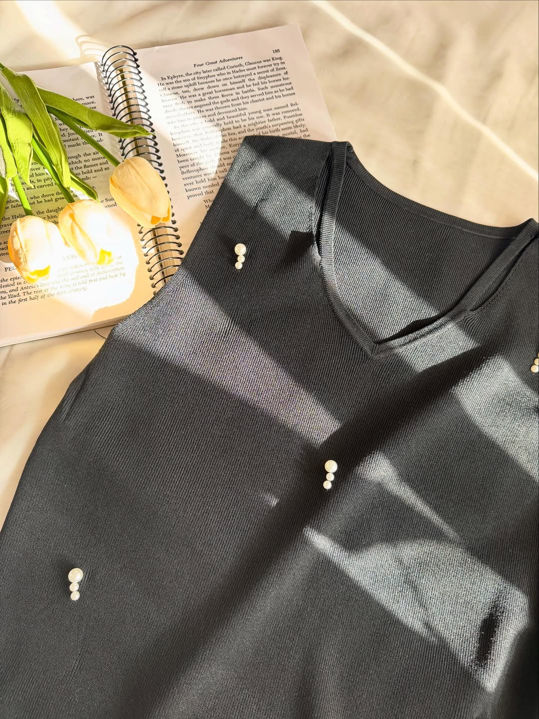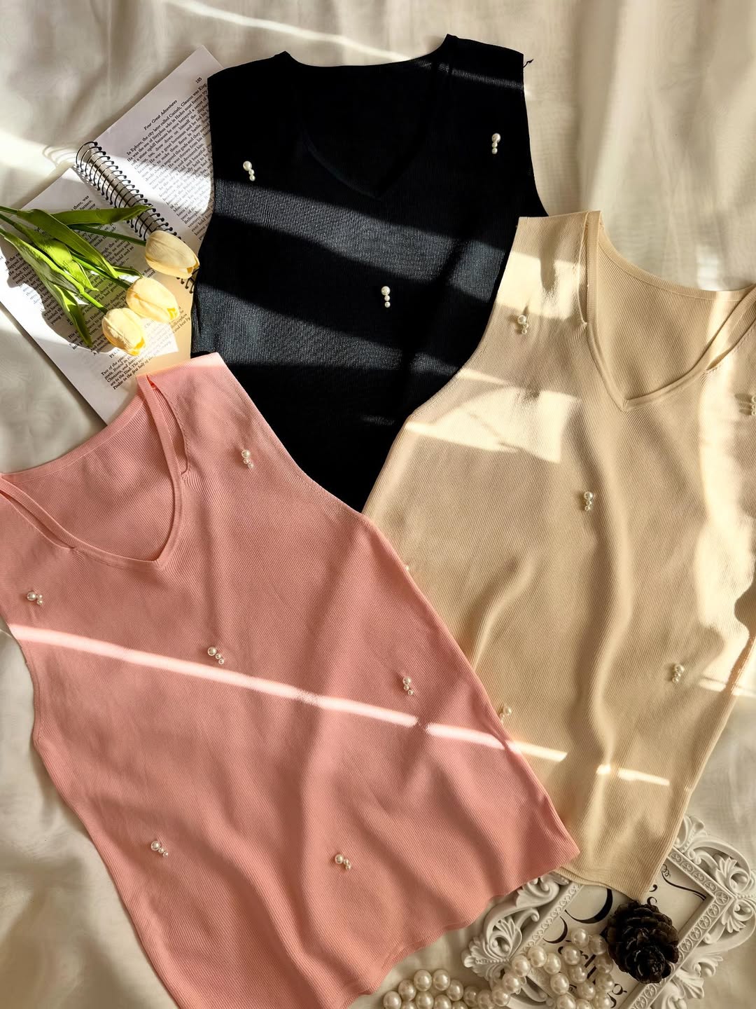 تاپ بافت مرواریدی جنس کار بافت کریستال مرواریدها پانچشدن و کنده نمیشن سه رنگ داره و فری سایز همراه با کشسانی