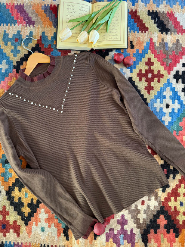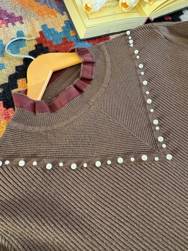 دور یقه و دور مچ ارگانزا ظریف کار شده
