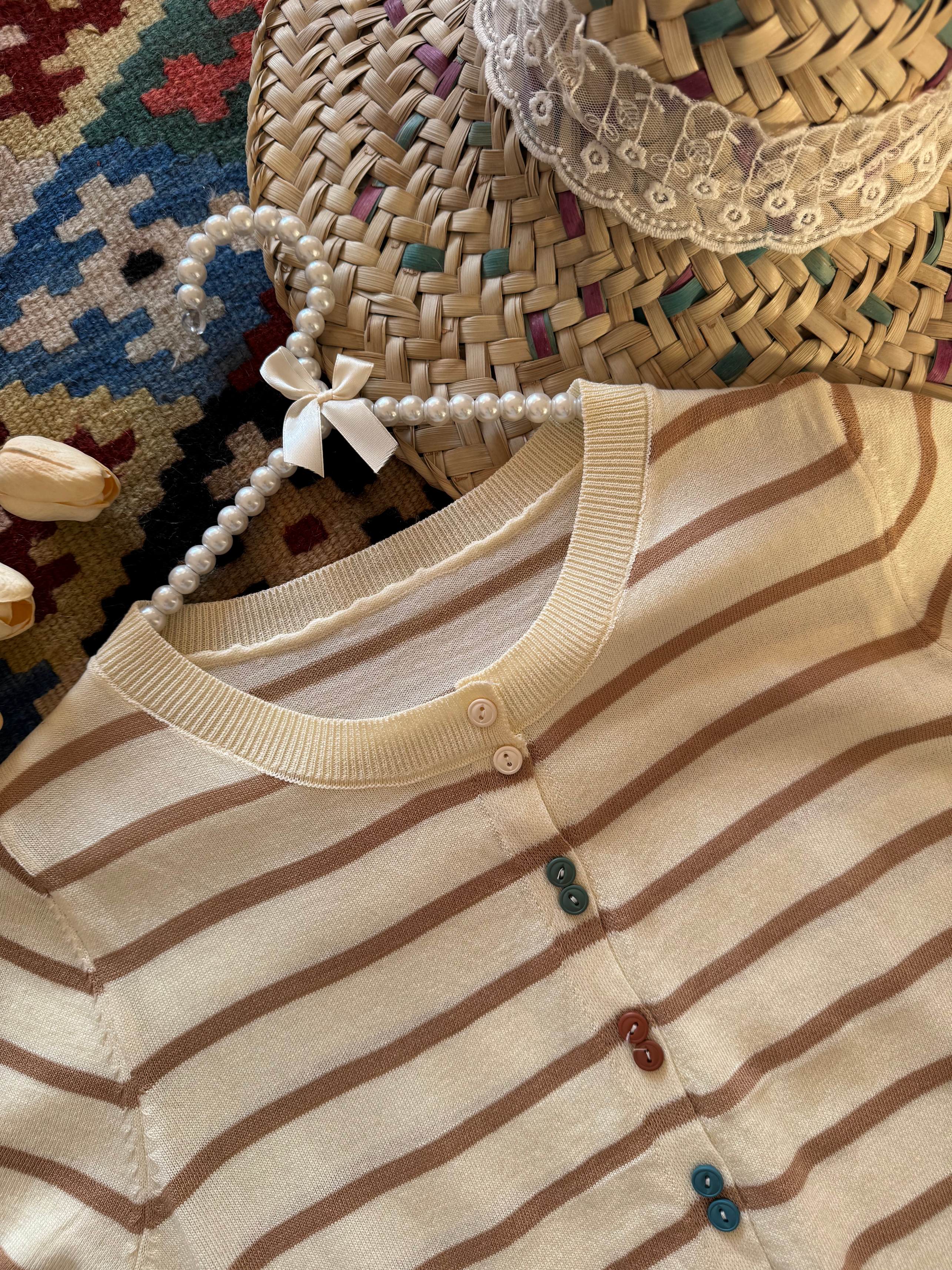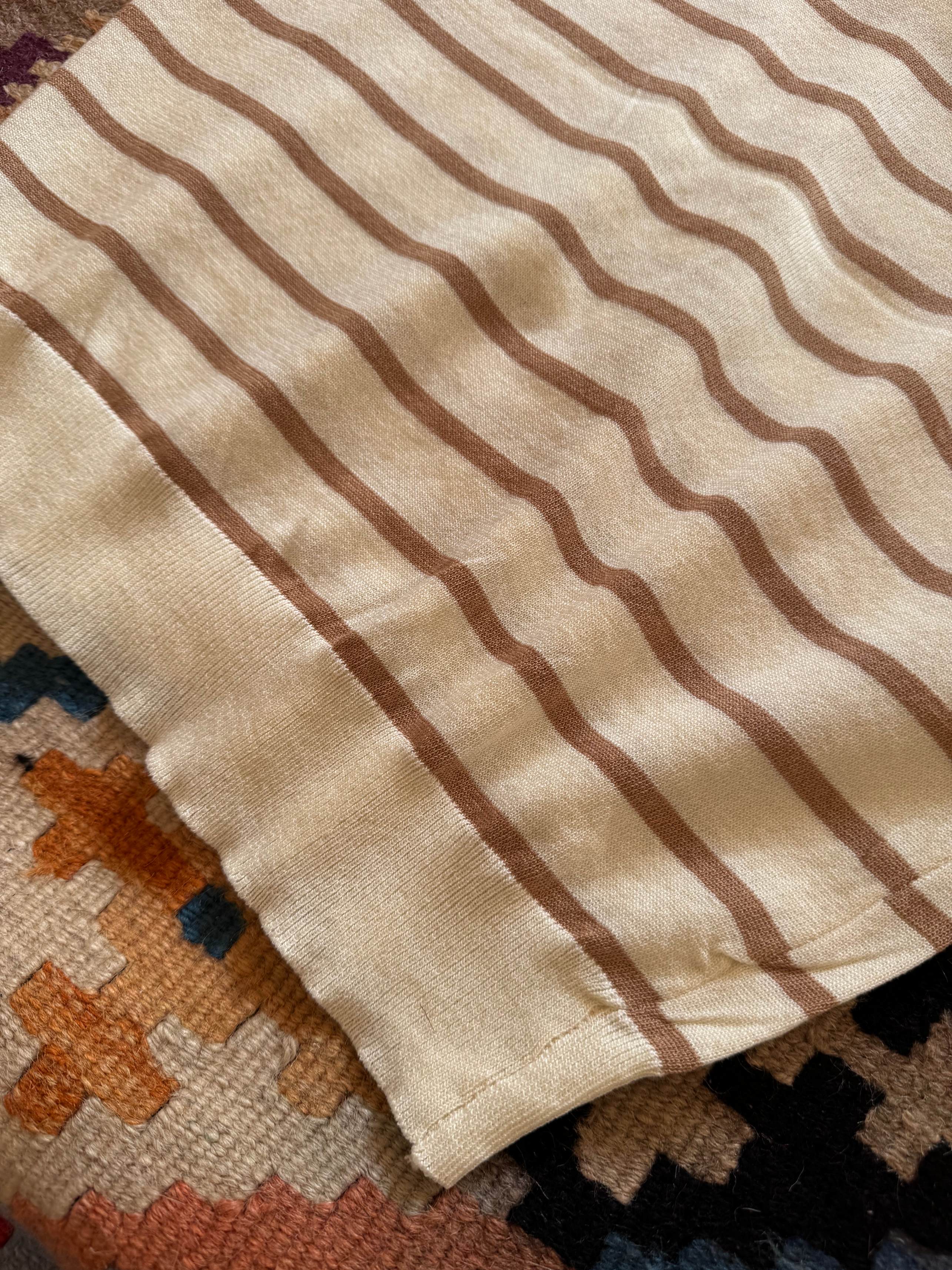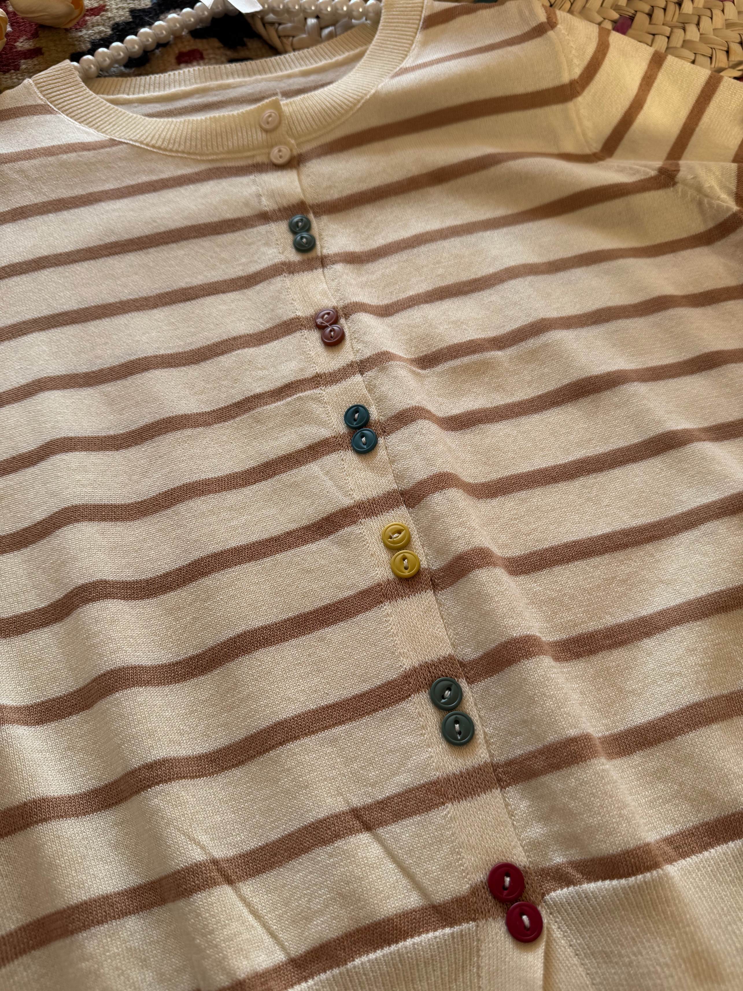 تیشرت بافت راه راه جنس کار بافت کریستال ظریف دکمه ها باز میشن فری سایز همراه با کشسانی بالا تک رنگ فاصله دو زیر بغل ۵۲ بلندی ۵۴