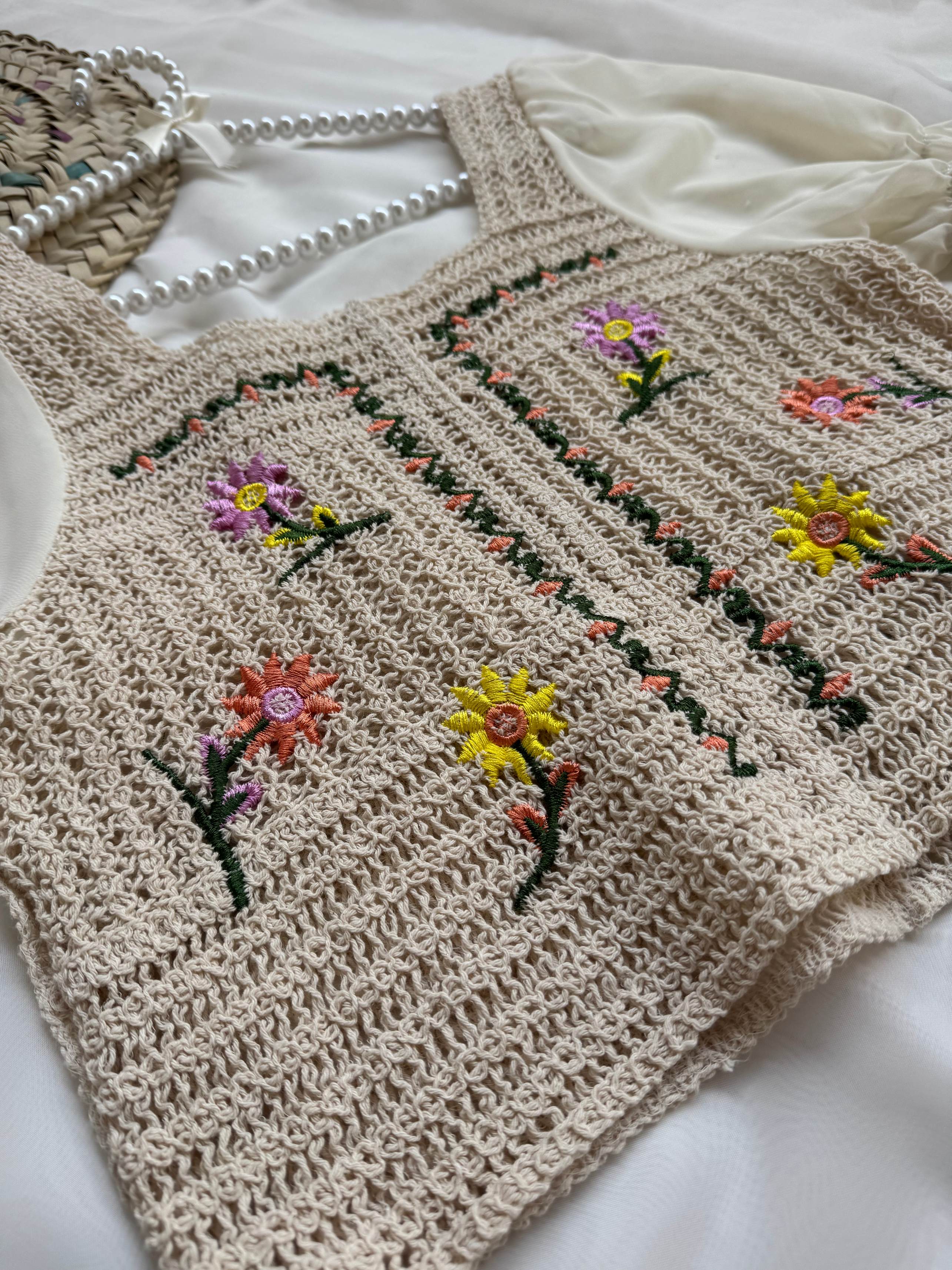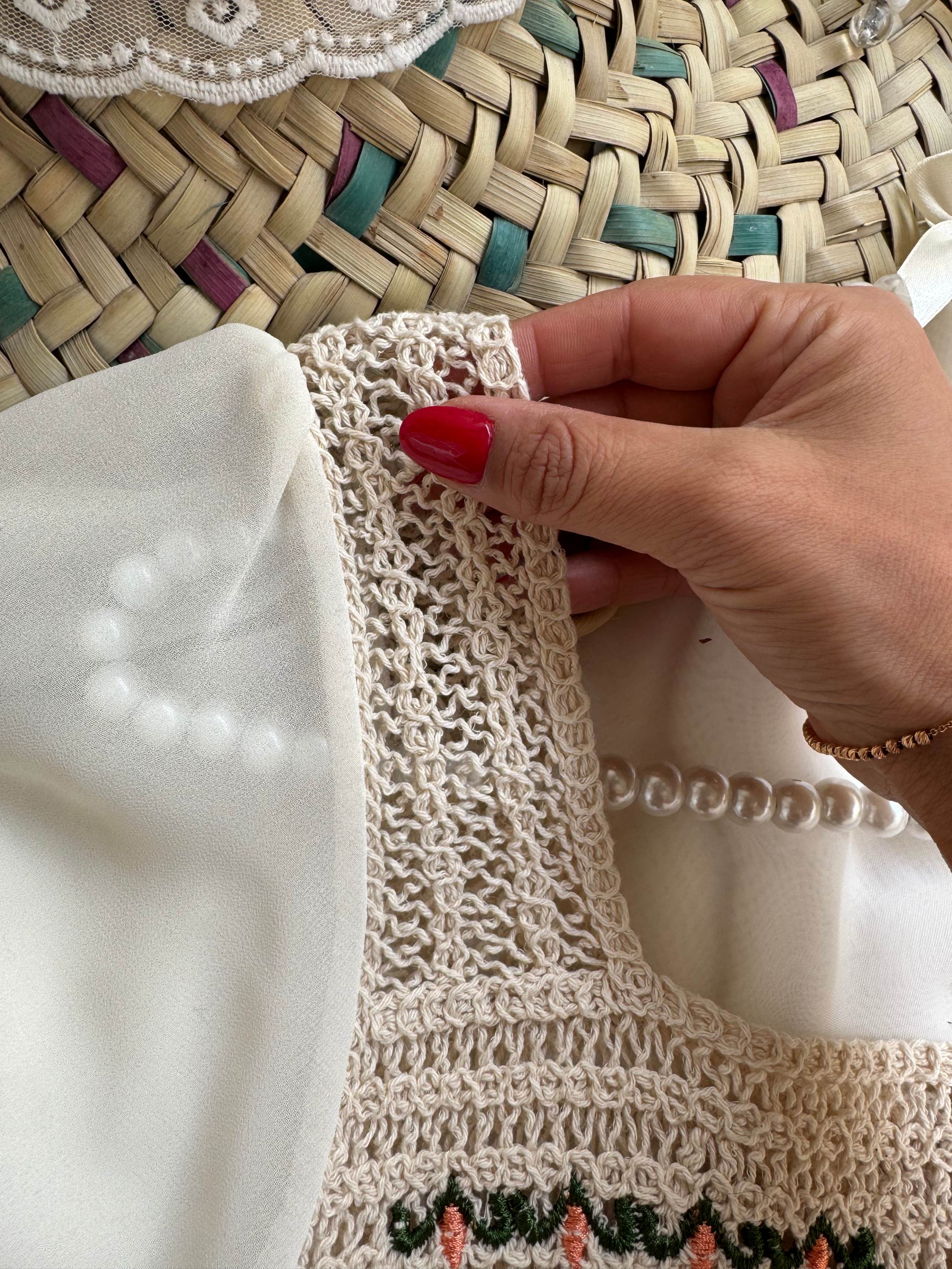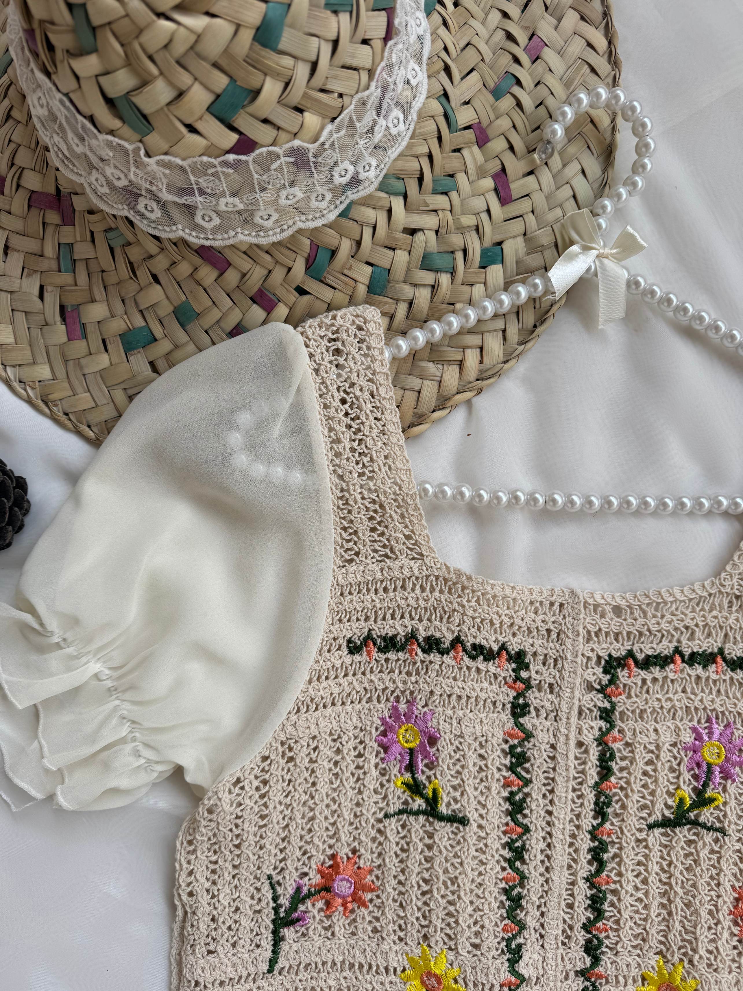 شومیز مکرومه وارداتی آستین حریر آستین کوتاه گلدوزی شده فری سایز تک رنگ فاصله دو زیر بغل ۴۵ بلندی ۴۸ بلندی آستین ۲۹ شومیز از عرض حدودا ۱۰ سانت کشسانی داره