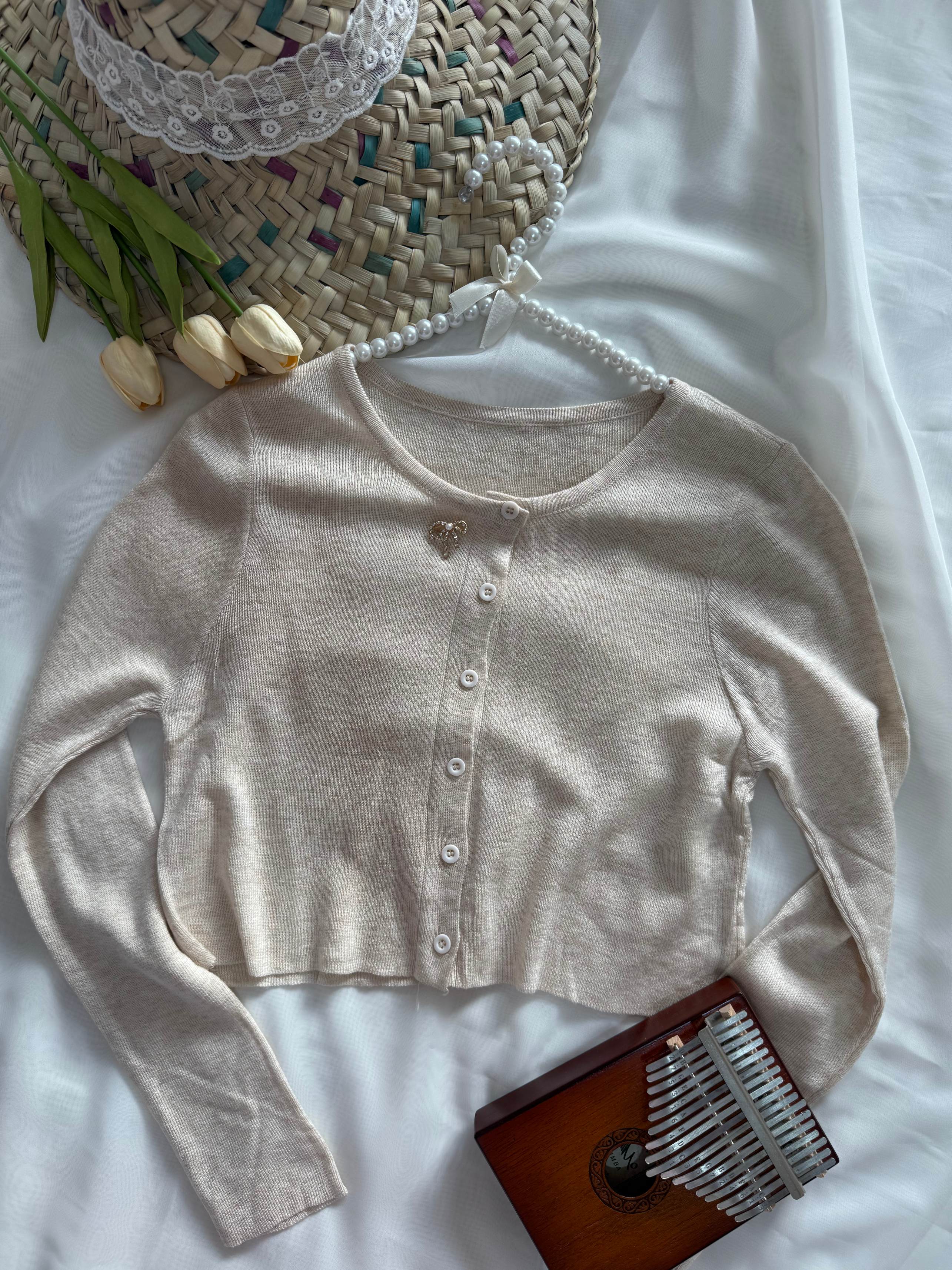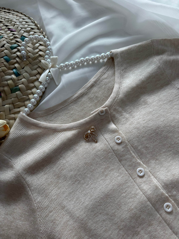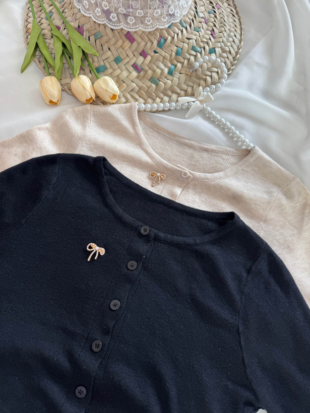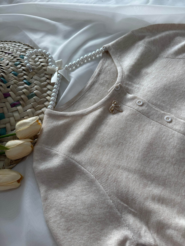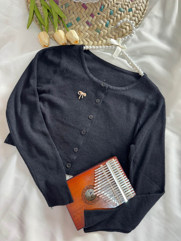 کراپ بافت جلو دکمه آستین بلند