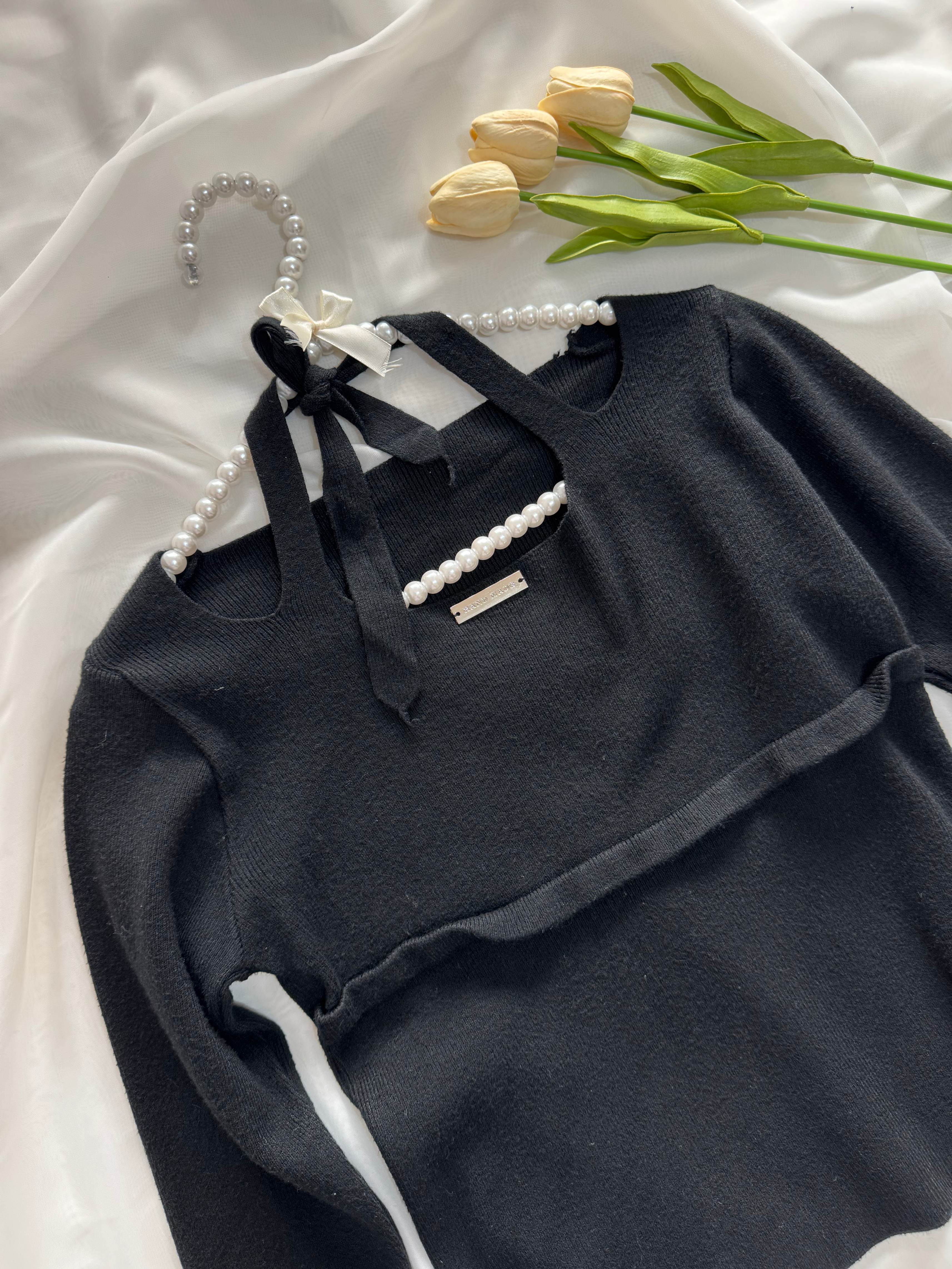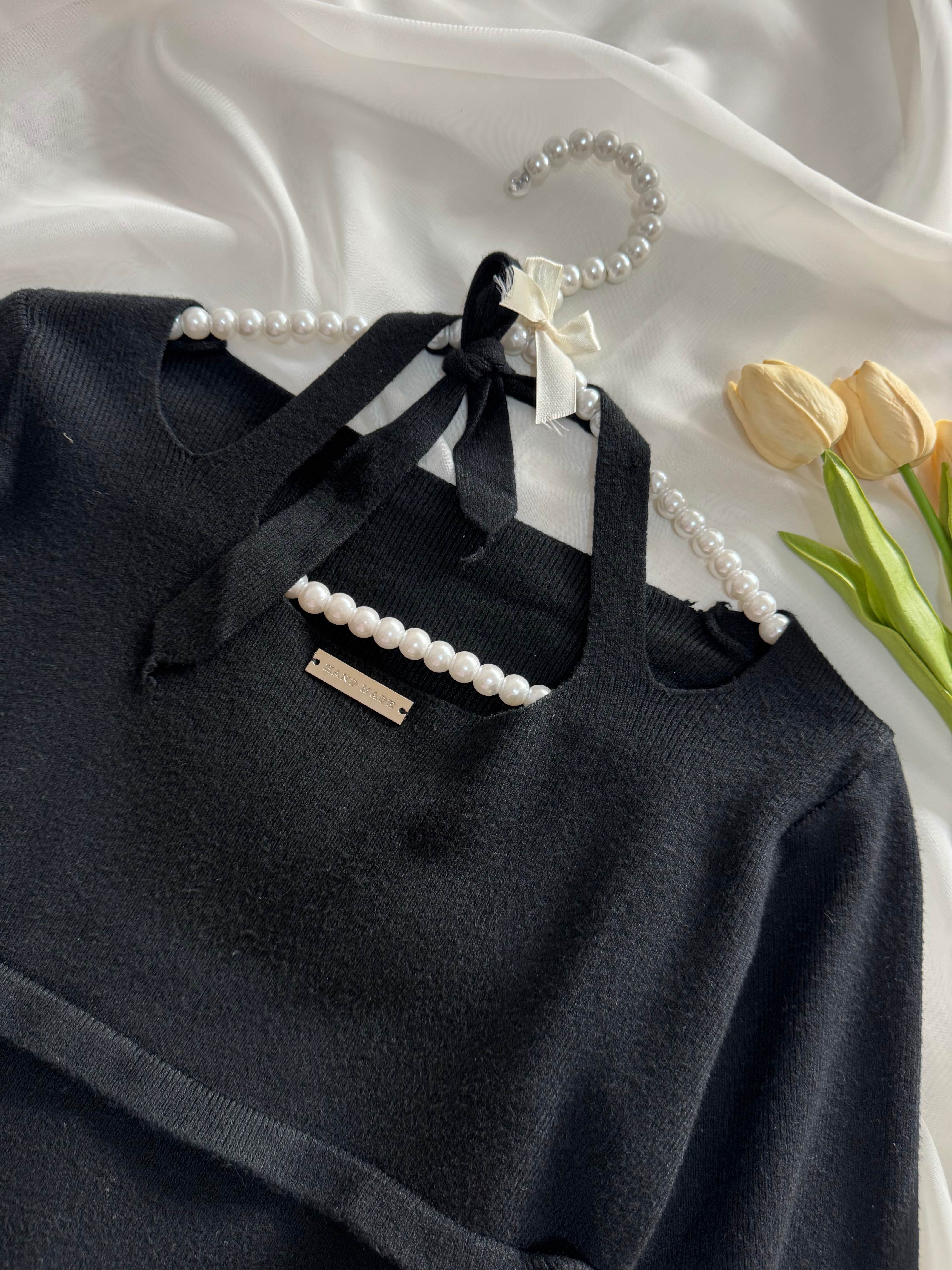 بلوز بافت مدل یقه گردنی جنس کار بافت گرم بالا کریستال مدل یقه متفاوت و خاصش کرده تک رنگ مشکی فری سایز همراه با کشسانی فاصله دو زیر بغل ۴۳ بلندی ۴۸ بلندی آستین ۵۱