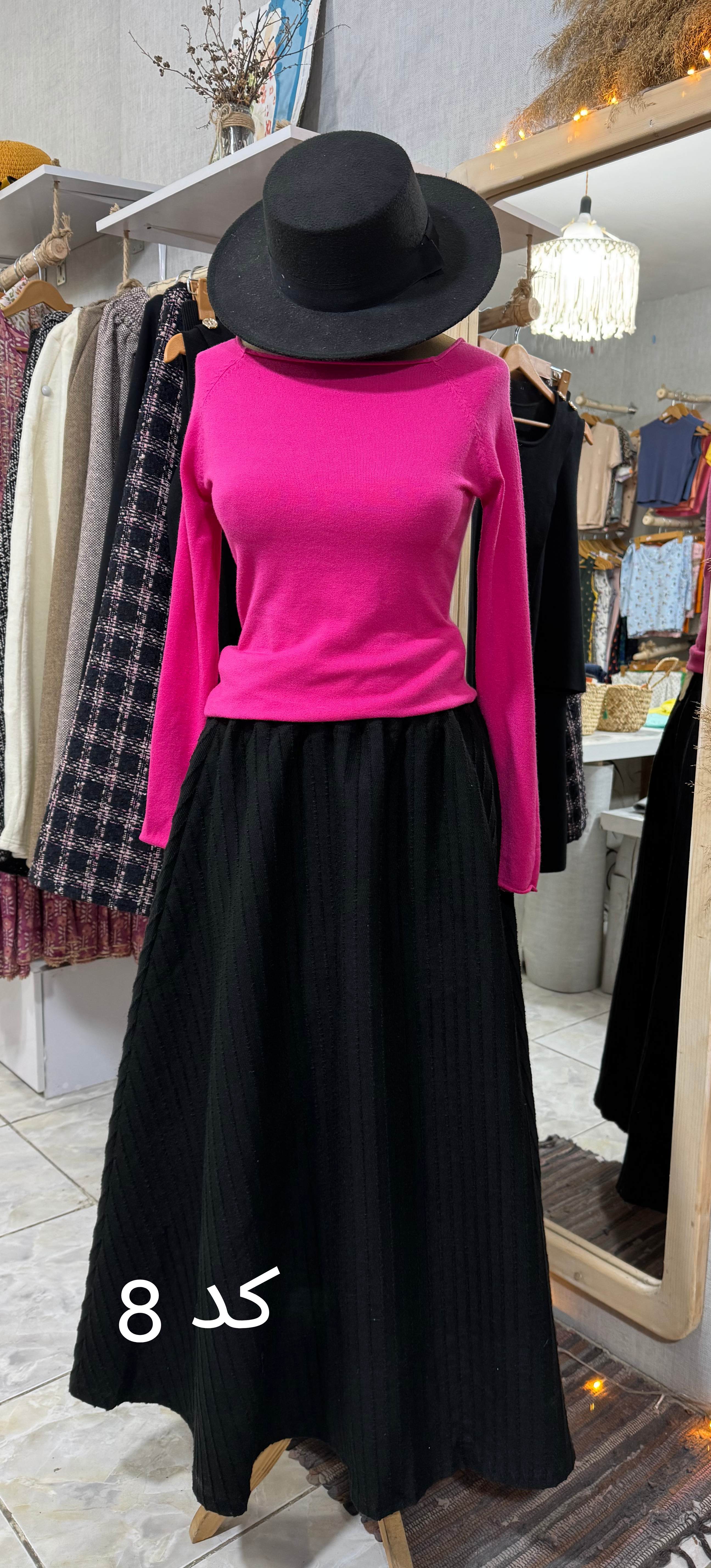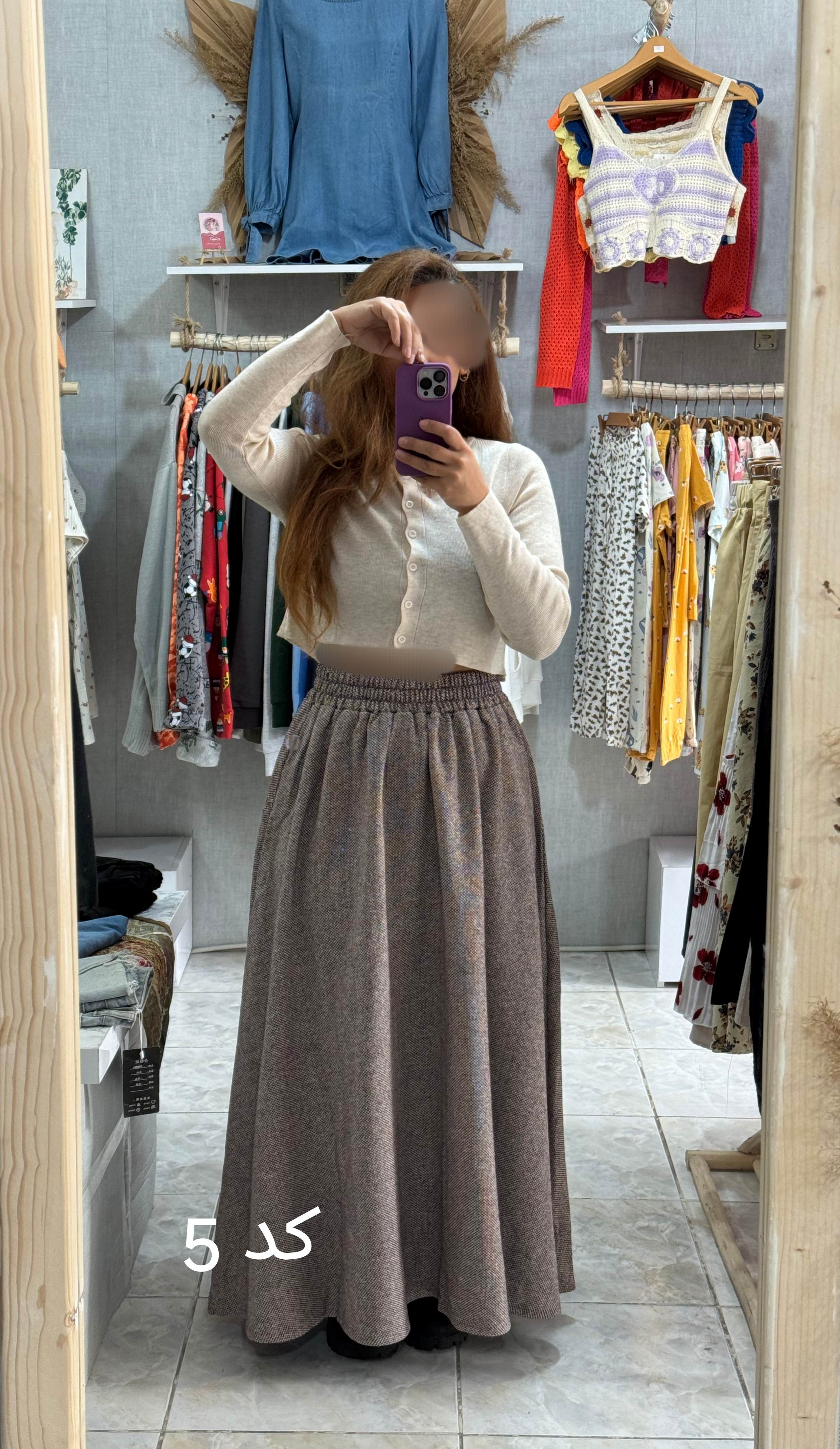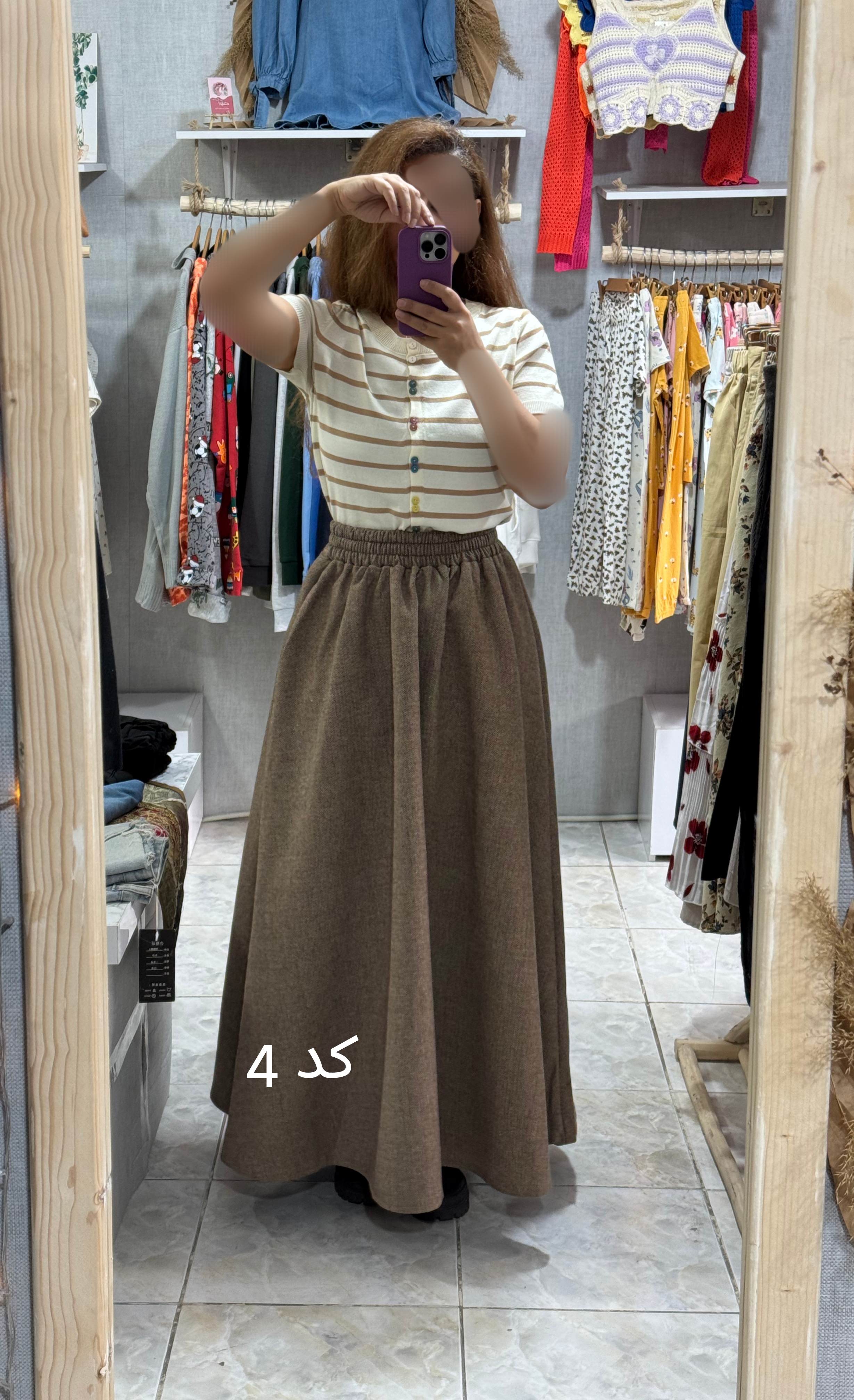 دامن های زمستانه سبک وینتیج همه مدل ها ضخیم و گرم هستن و مناسب فصل کمر کش و فری سایز قد کارها بین 90 تا 100متغیر جزییات مربوط به هر مدل توی تصاویر کاملا مشخصه