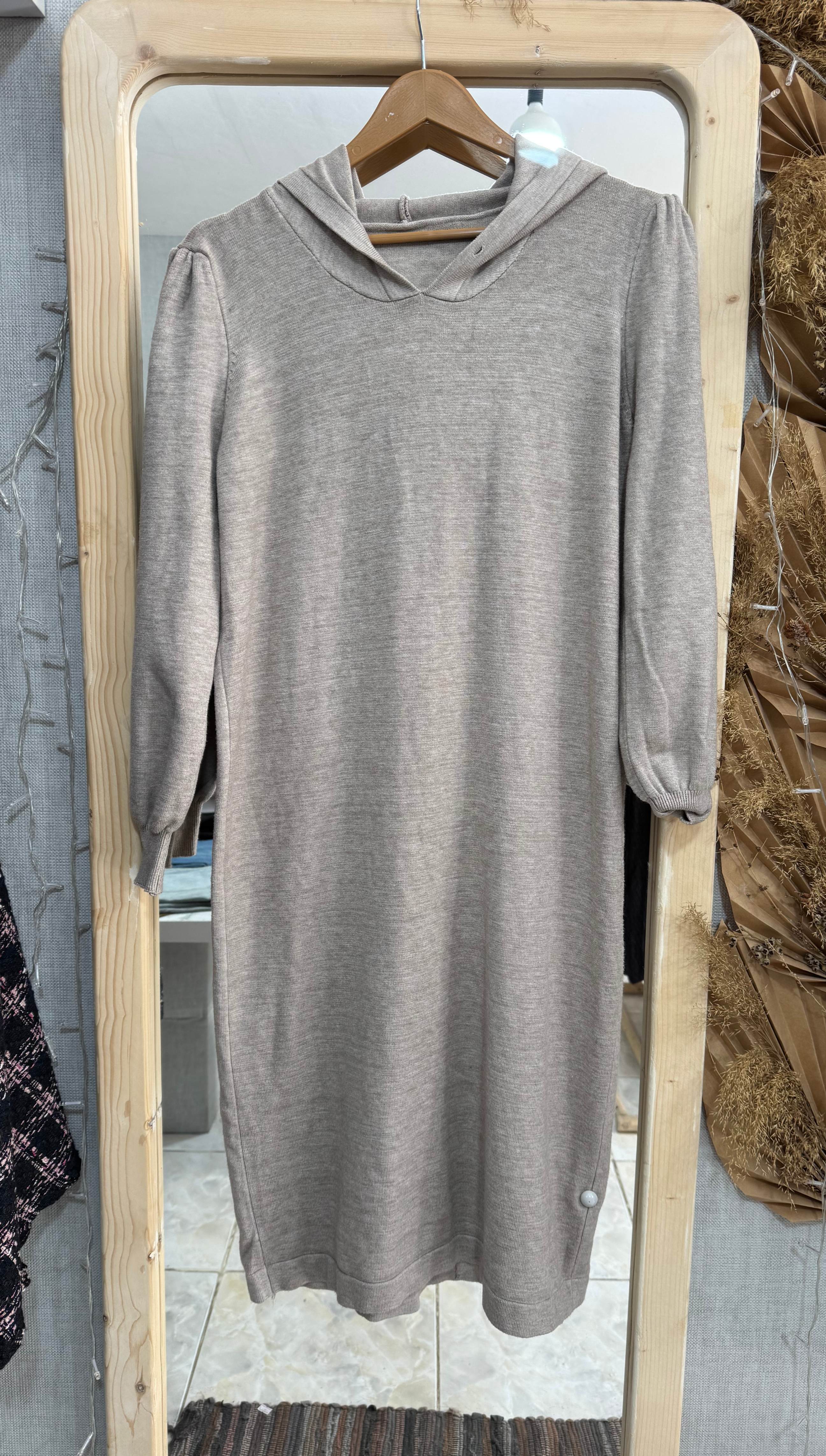 پیراهن بلند بافت کلاه دار