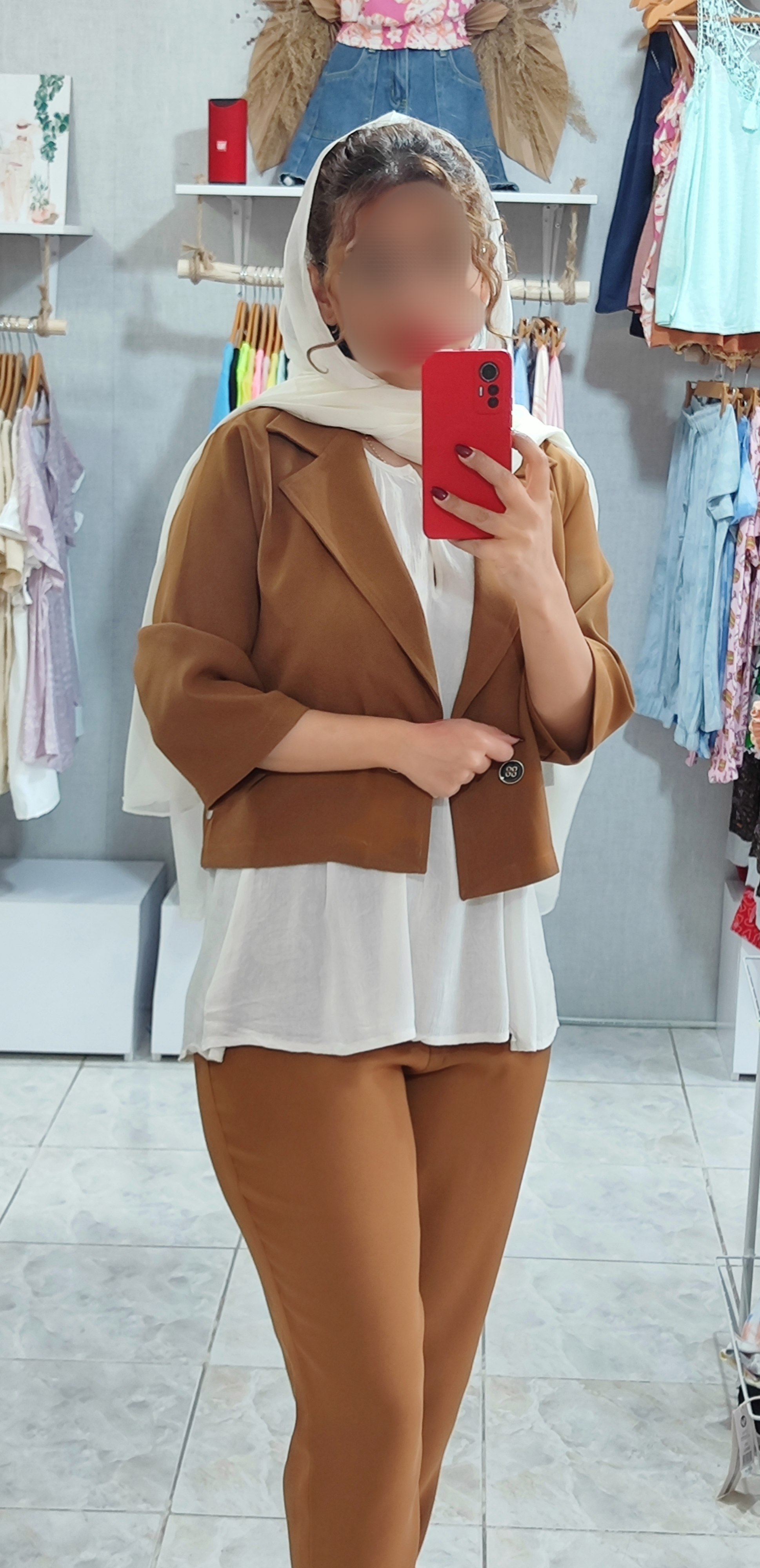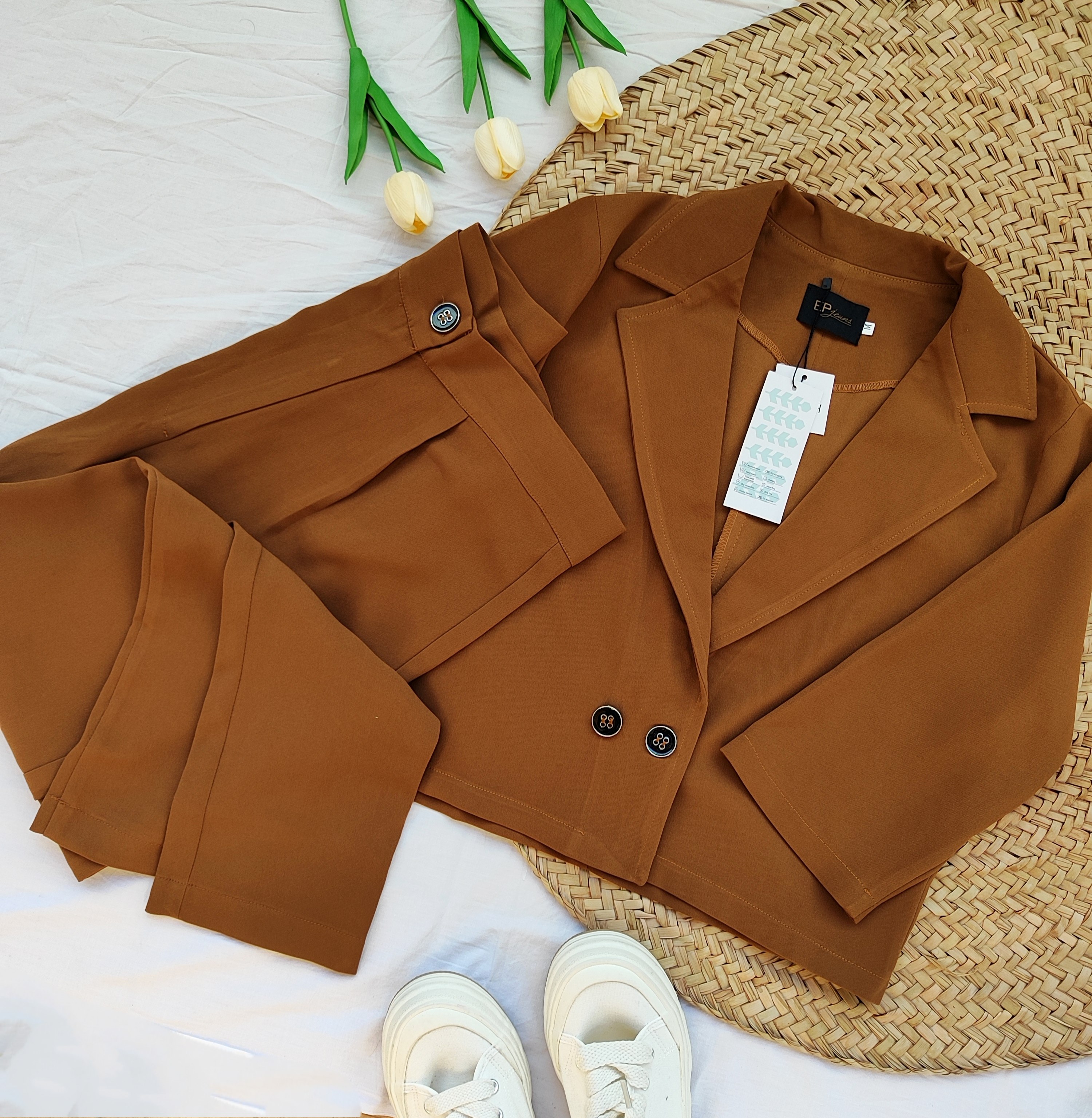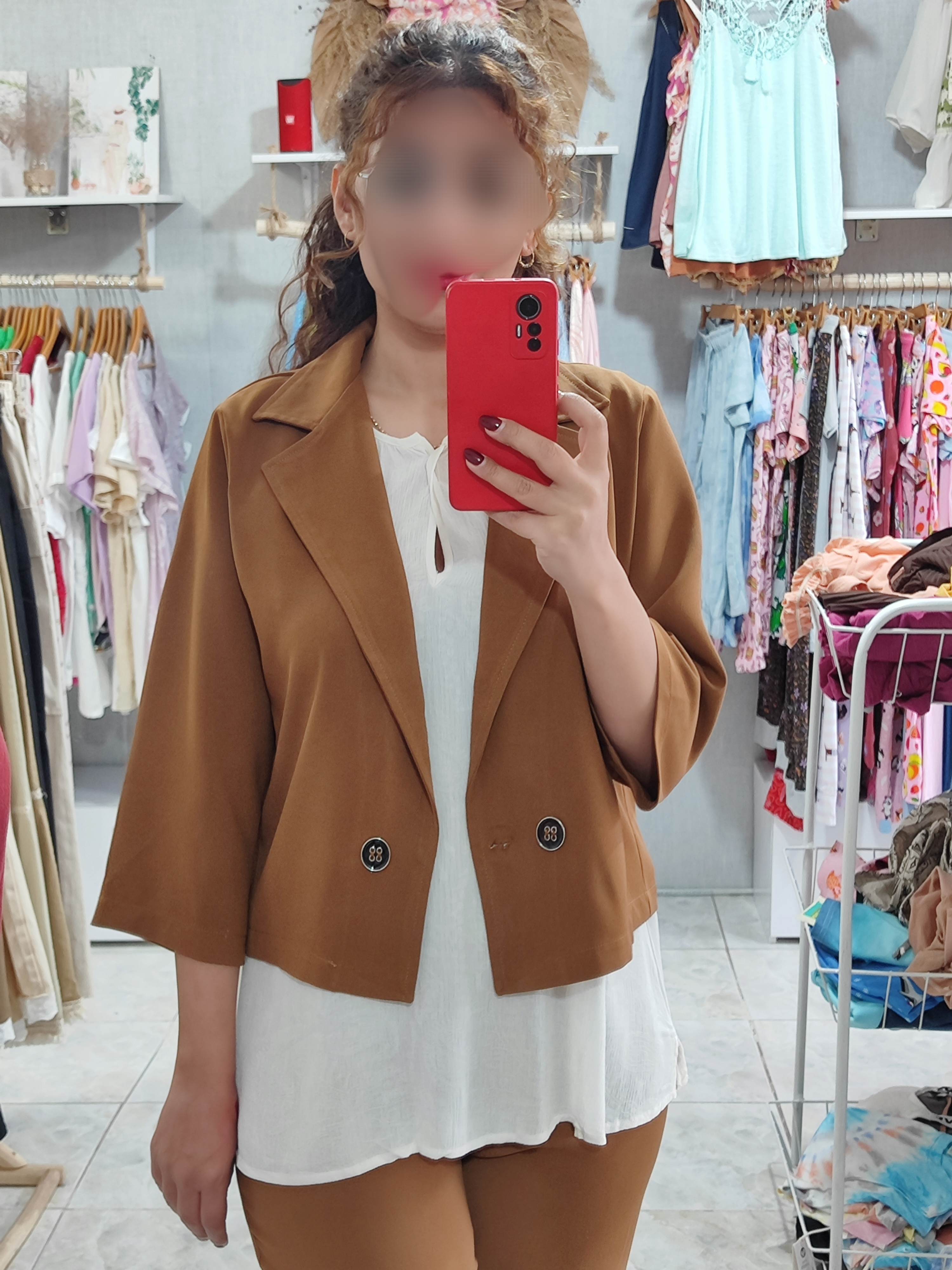 ست کراپ کت و شلوار جنس کار کرپ منسجم و احار دار بسیار خوش دوخت و خوش پوش تک رنگ قهوه ای سایز L فاصله دو زیر بغل کت ۵۵ بلندی ۵۱ دور کمر شلوار ۸۶ بلندی ۱۰۱