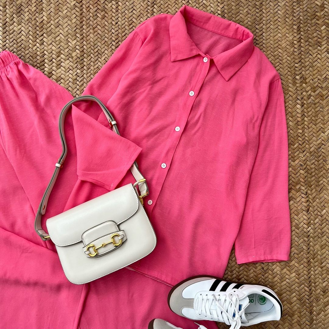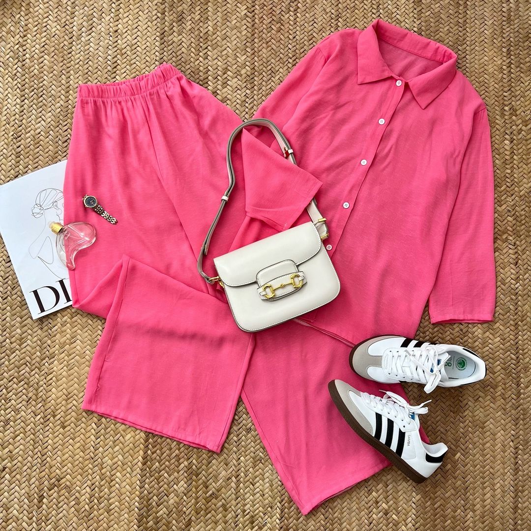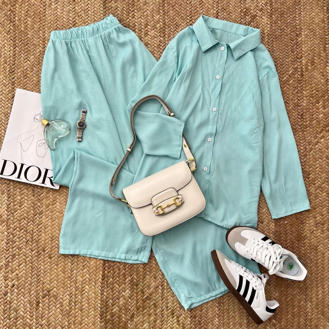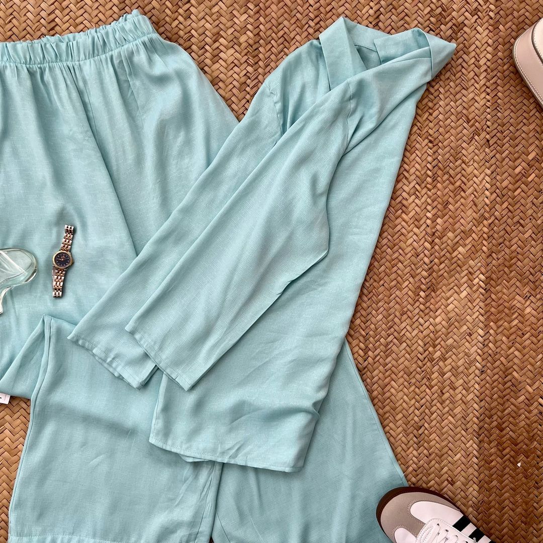 ست شومیز و شلوار لینن شومیز جلو دکمه کمر شلوار کش جیب داره خنک و مناسب فصل گرما تک سایز فاصله دو زیر بغل ۶۴ بلندی ۷۲ دور کمر شلوار ۹۰ بلندی شلوار ۱۰۴