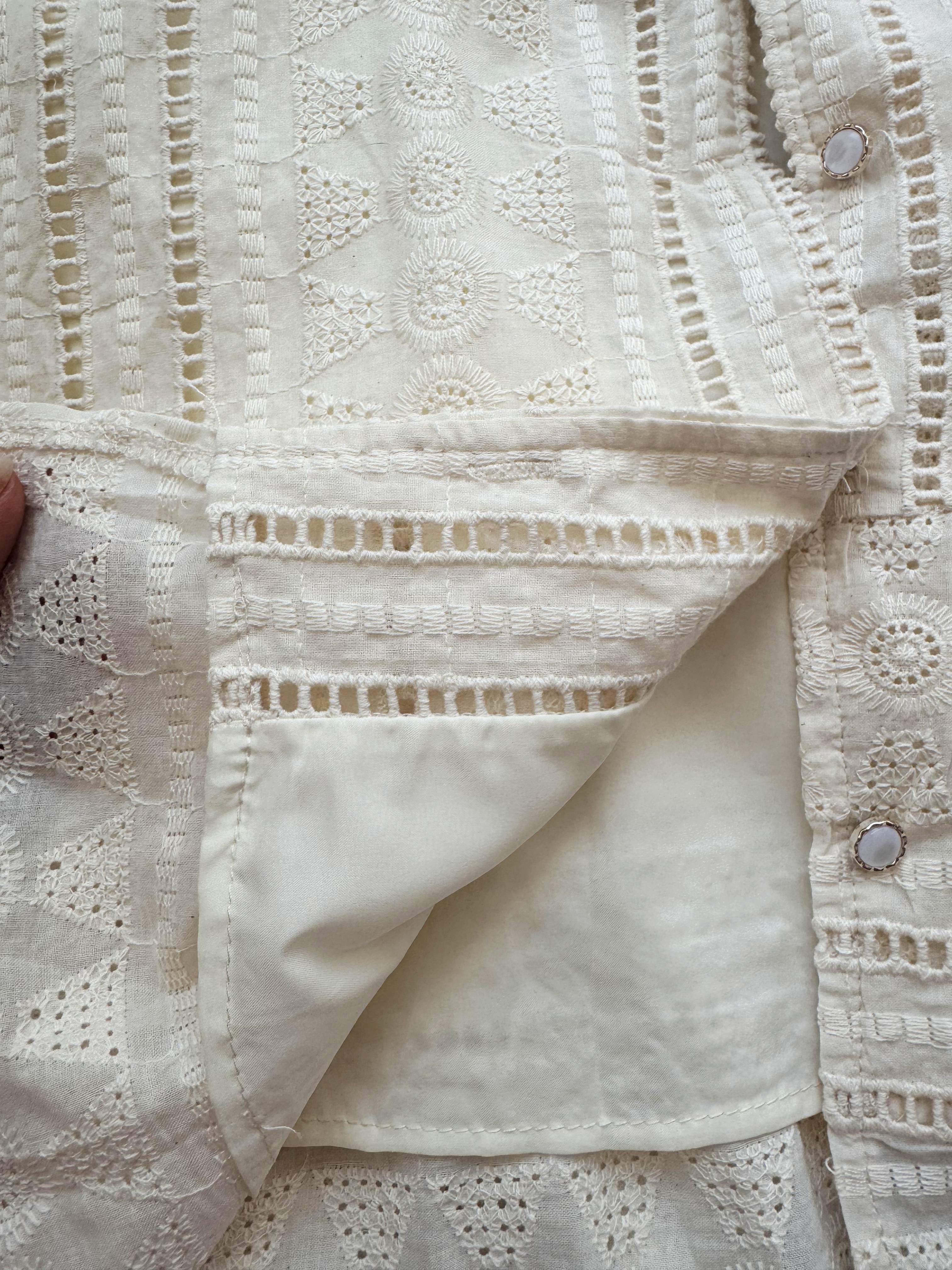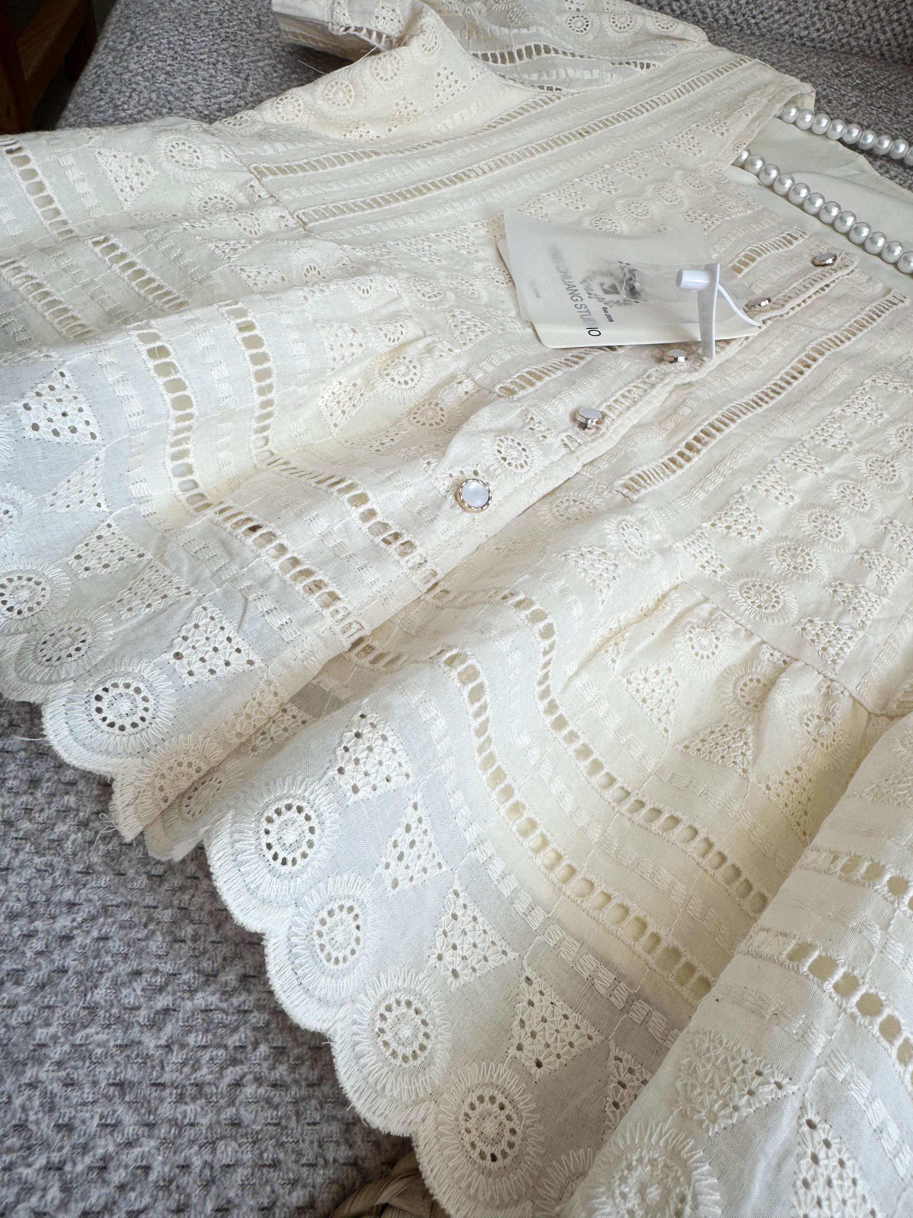 شومیز مجلسی خامه دوزی زنانه جنس پارچه خامه دوزی وارداتی آستر دار تک رنگ شیری دارای سایزبندی :L,XL,XXL مشخصات سایز L فاصله دو زیر بغل ۵۰ بلندی ۵۸ مشخصات سایز XL فاصله دو زیر بغل ۵۴ بلندی ۵۸ مشخصات سایز XXL فاصله دو زیر بغل ۵۶ بلندی ۶۰
