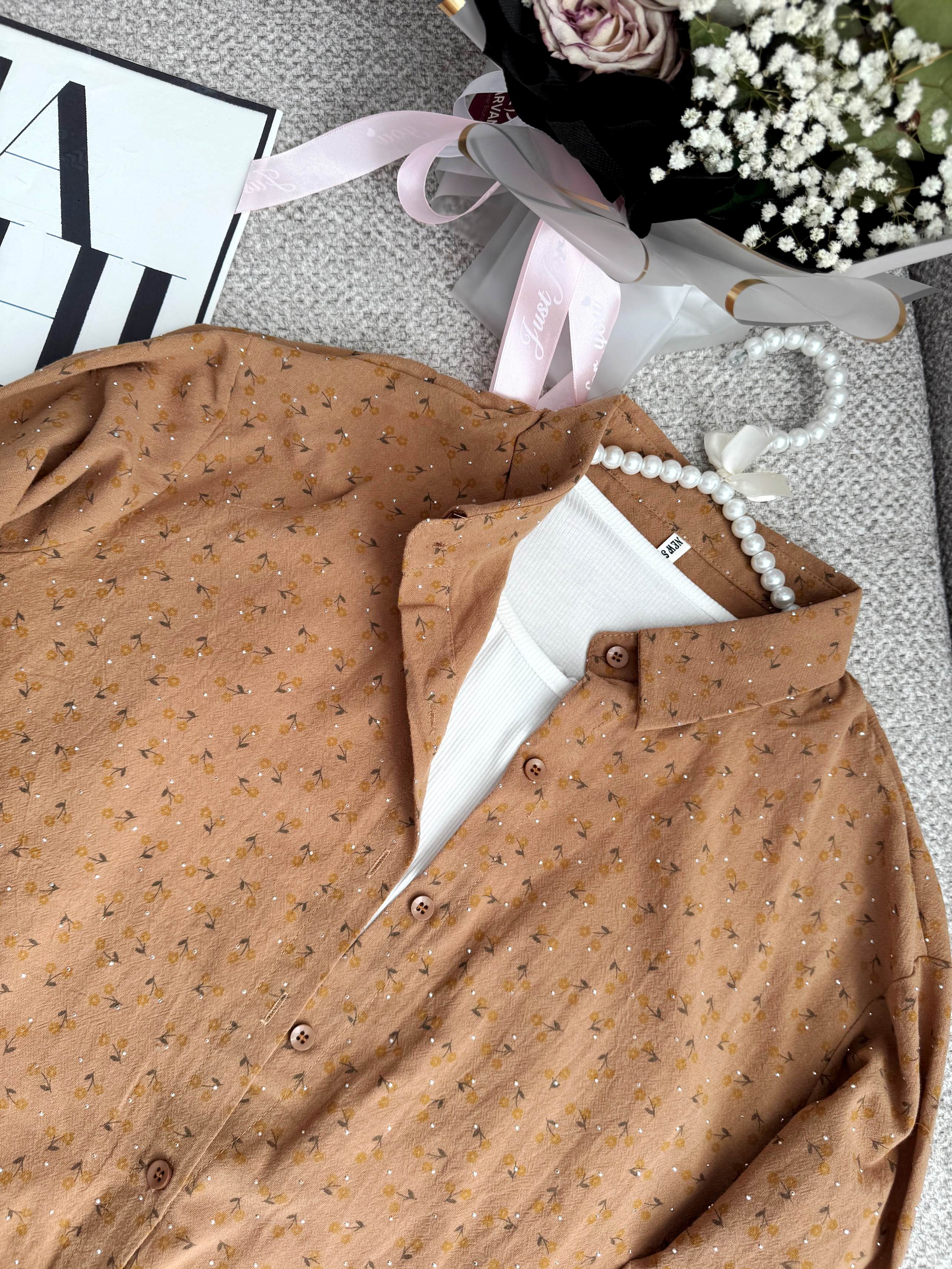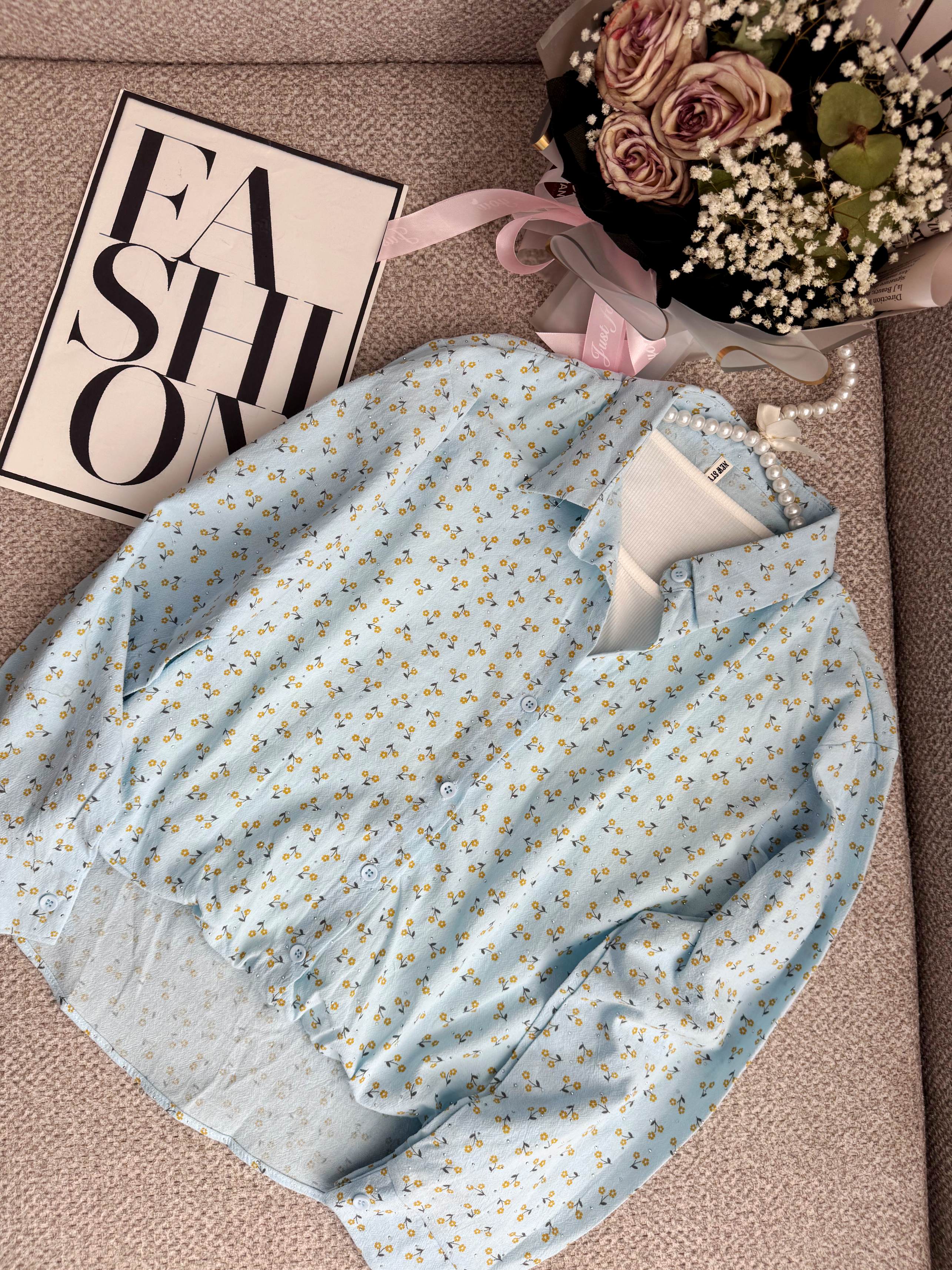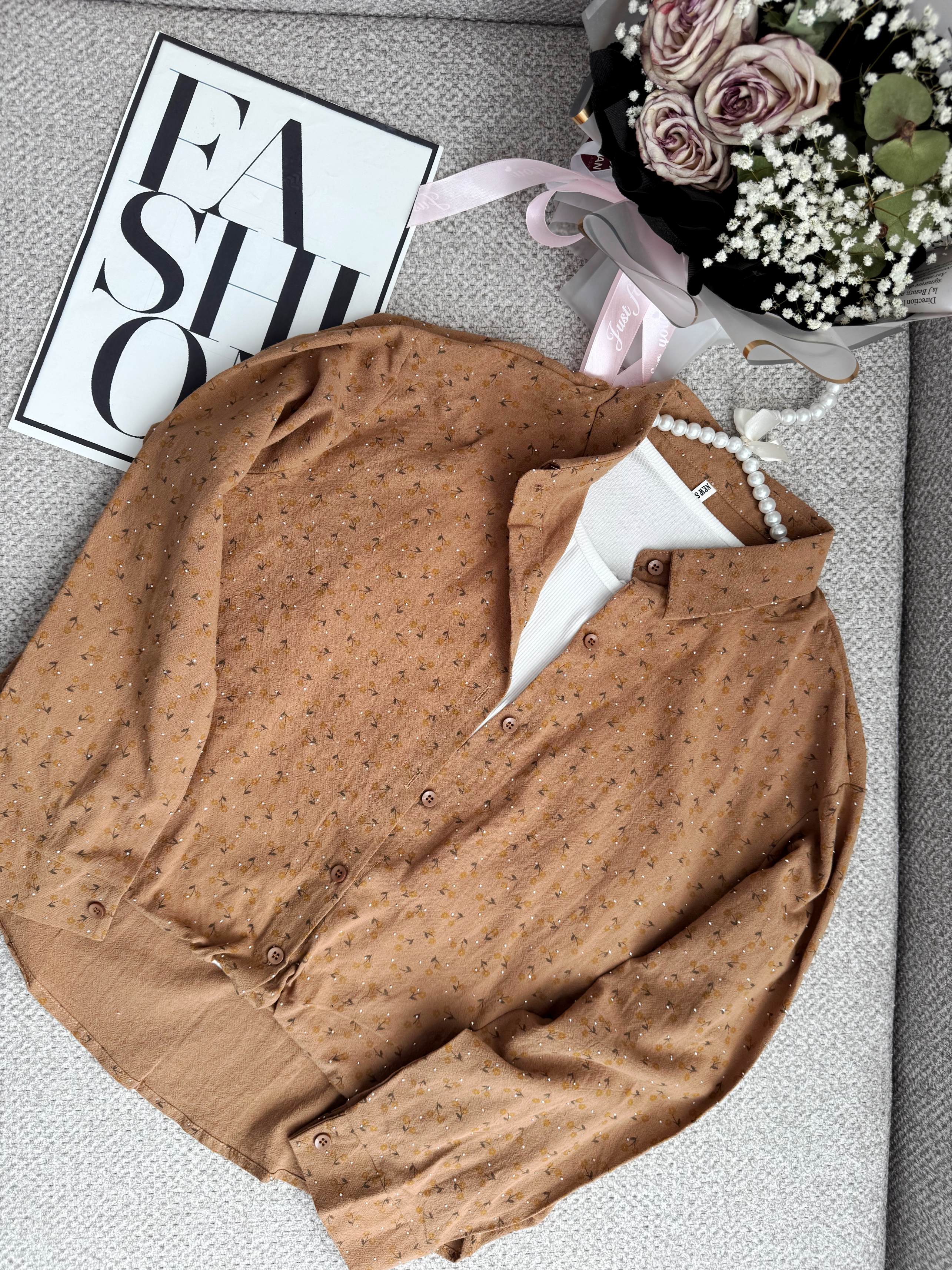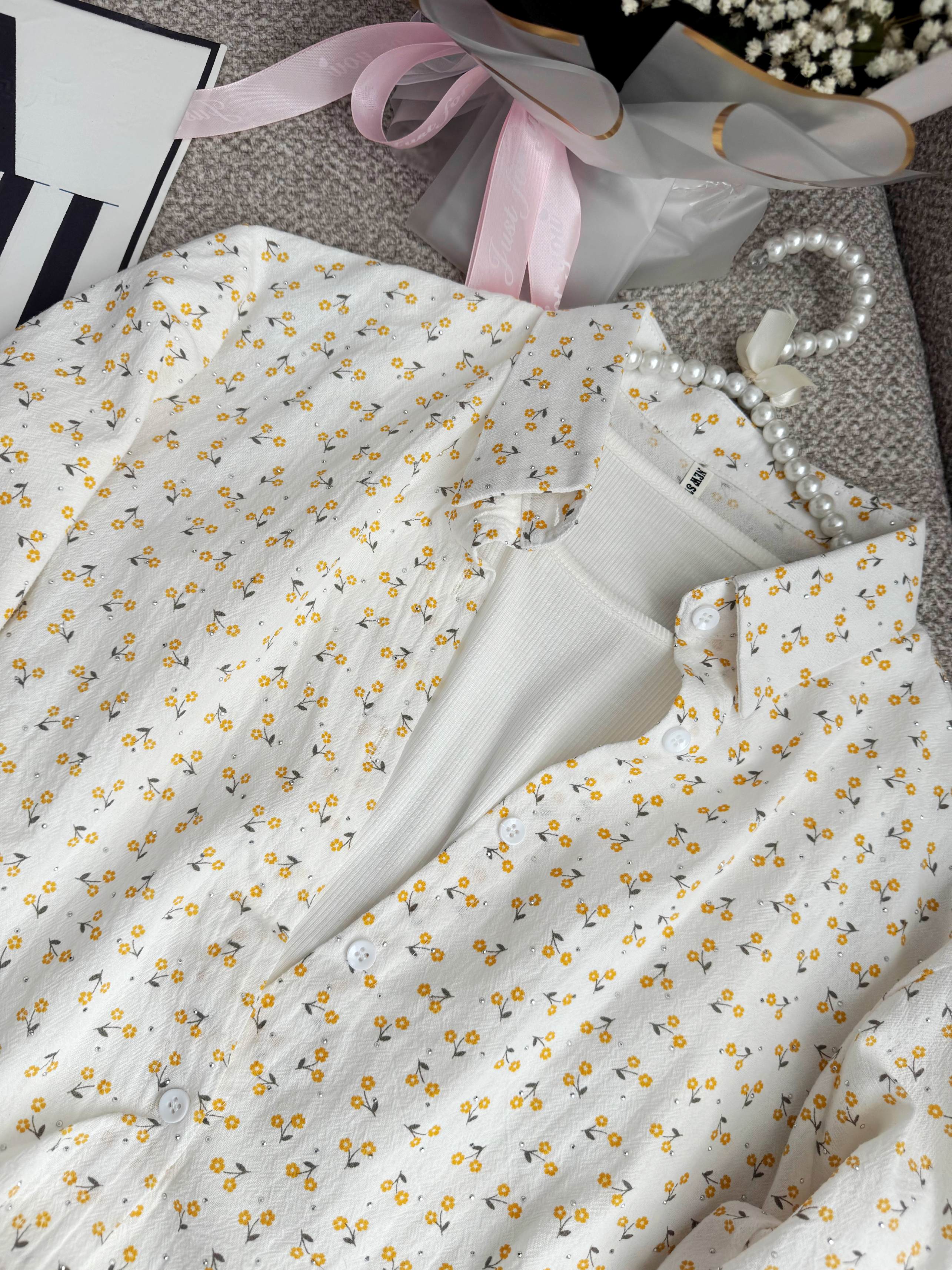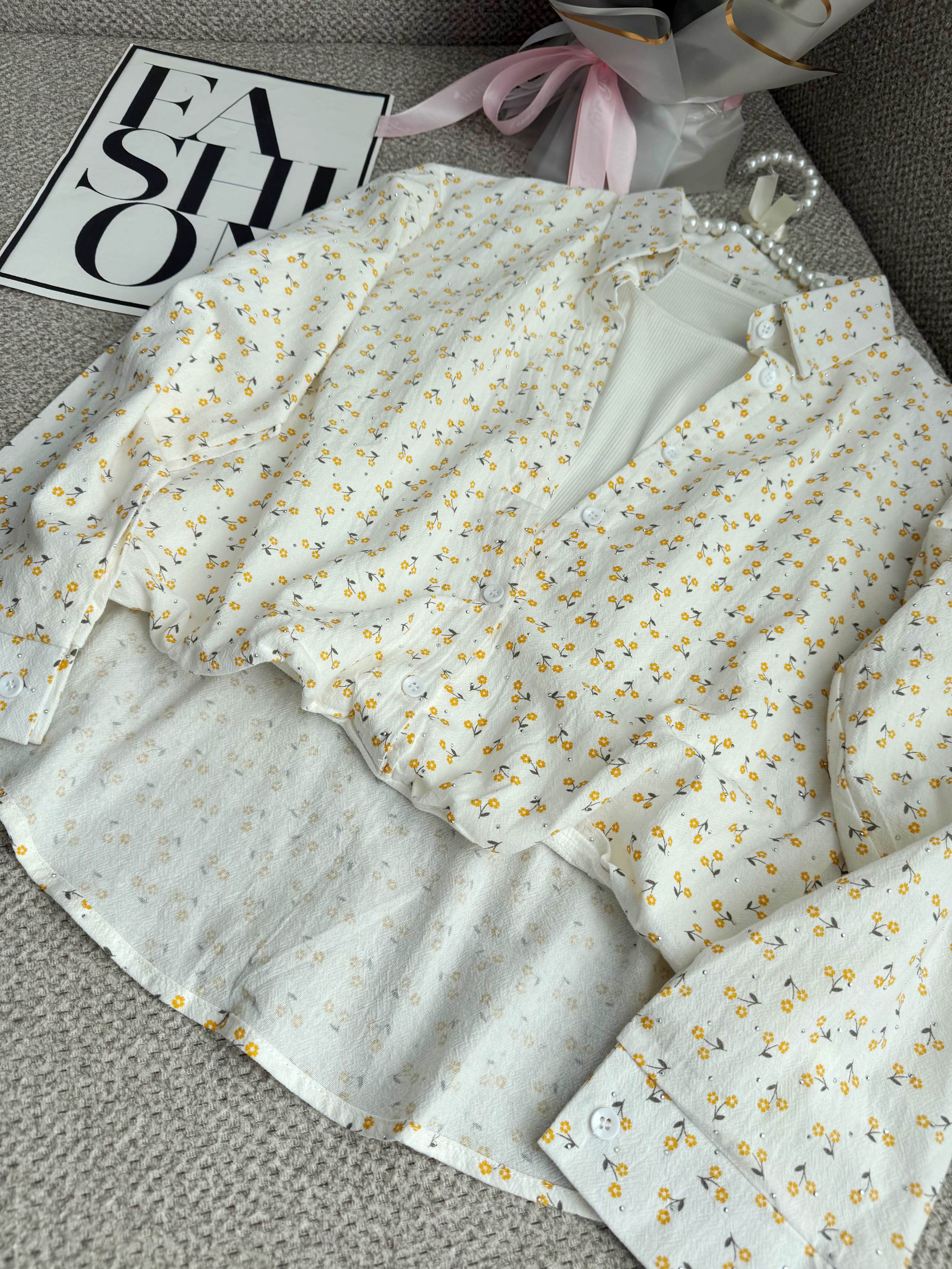 شومیز جلو گره ای نگینی دو تکه که تاپ چسبیده به خود شومیز هست دارای رنگبندی فری سایز لطفا اندازه ها رو چک بفرمایید 👇 فاصله دو زیر بغل ۵۴ بلندی از جلو ۴۸ از پشت ۶۰