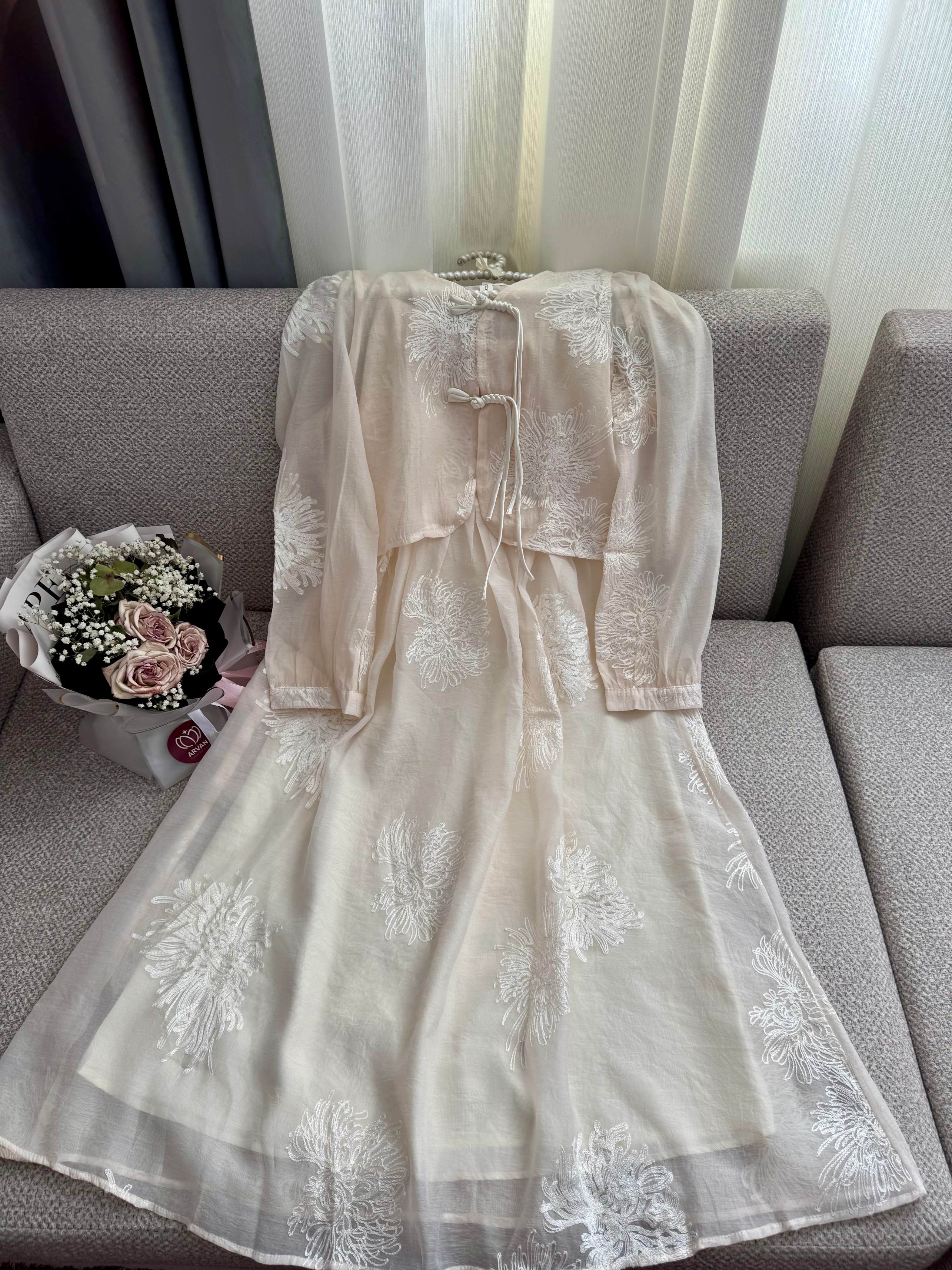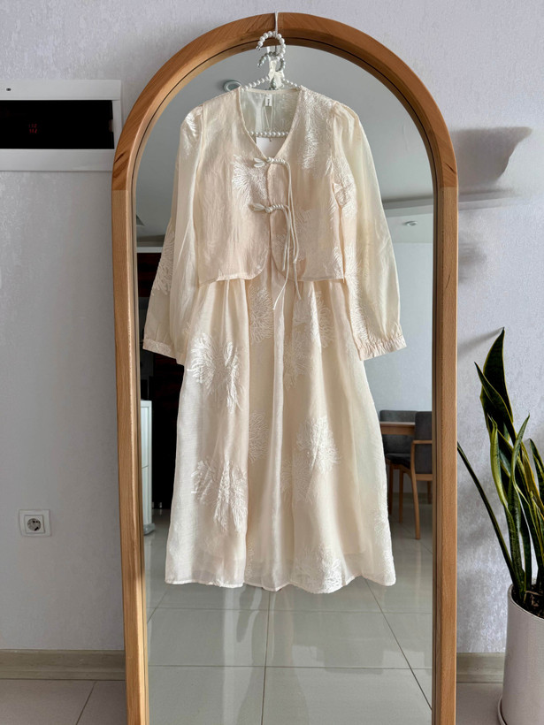 ست دو تکه سارافون و کت حریر طرحدار زنانه و دخترانه
