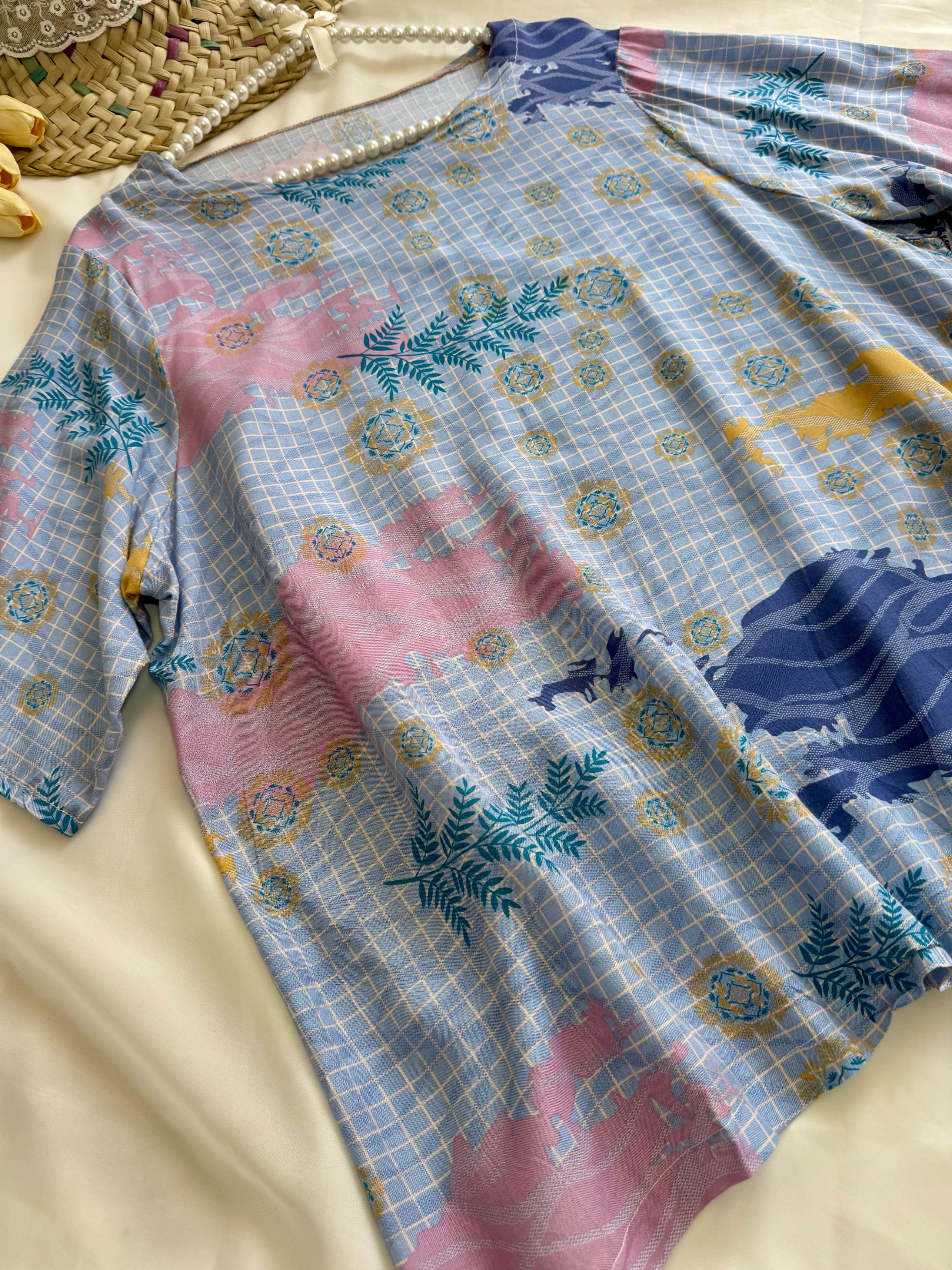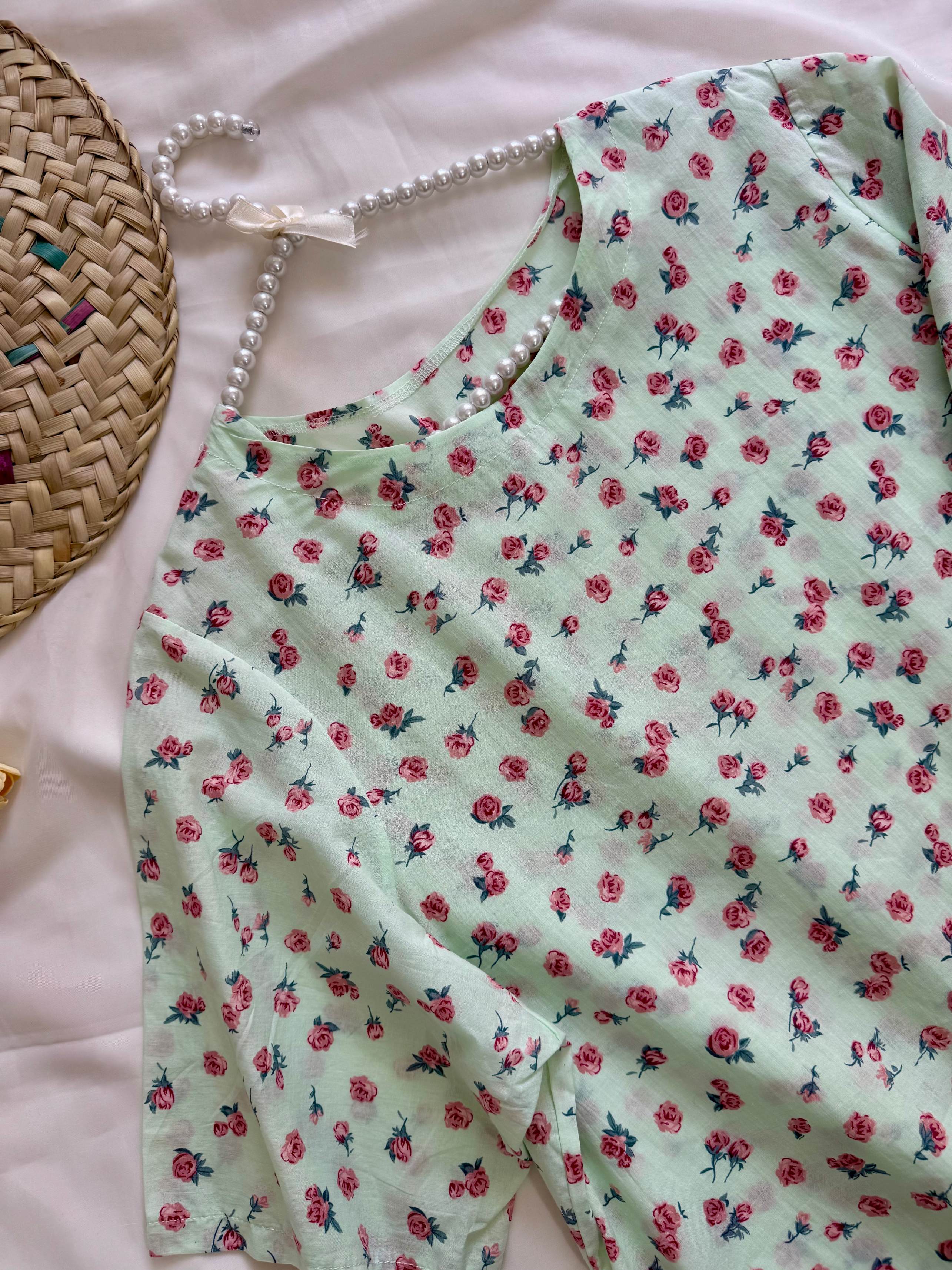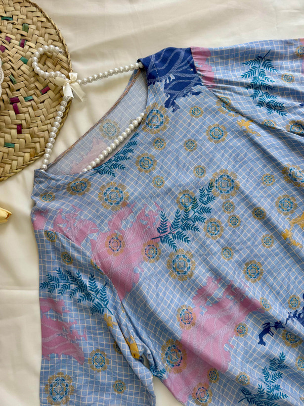 سفید گل صورتی،سبز گل رز،سبز گل ریز،آبی گل ریز : فاصله دو زیر بغل ۶۵ بلندی ۷۲ بلندی آستین ۳۳