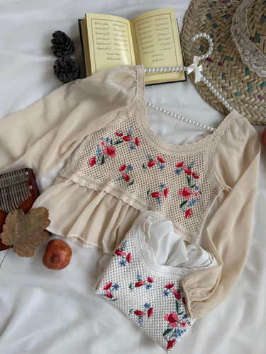 بلوز آستین حلقه نخی دخترانه دانتل دار