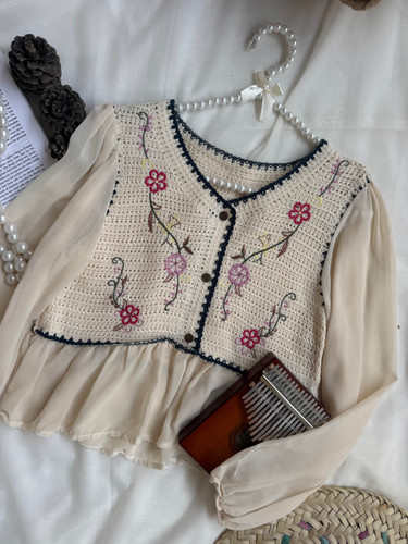 جلیقه کتان گلدوزی زنانه