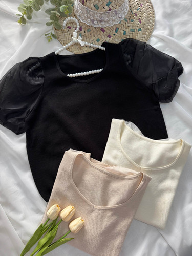 بلوز بافت آستین پفی ارگانزا