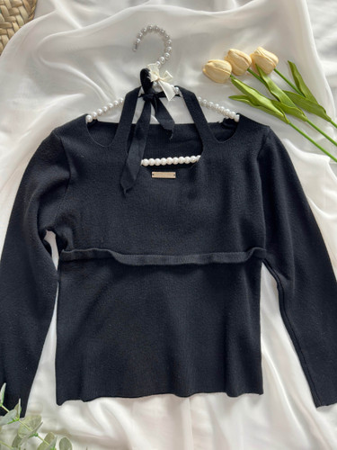 تاپ بافت زنانه و دخترانه مدل پشت ضربدری