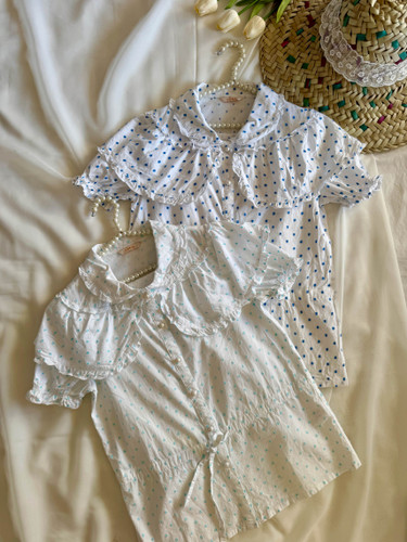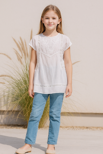 بلوز آستین حلقه نخی دخترانه دانتل دار